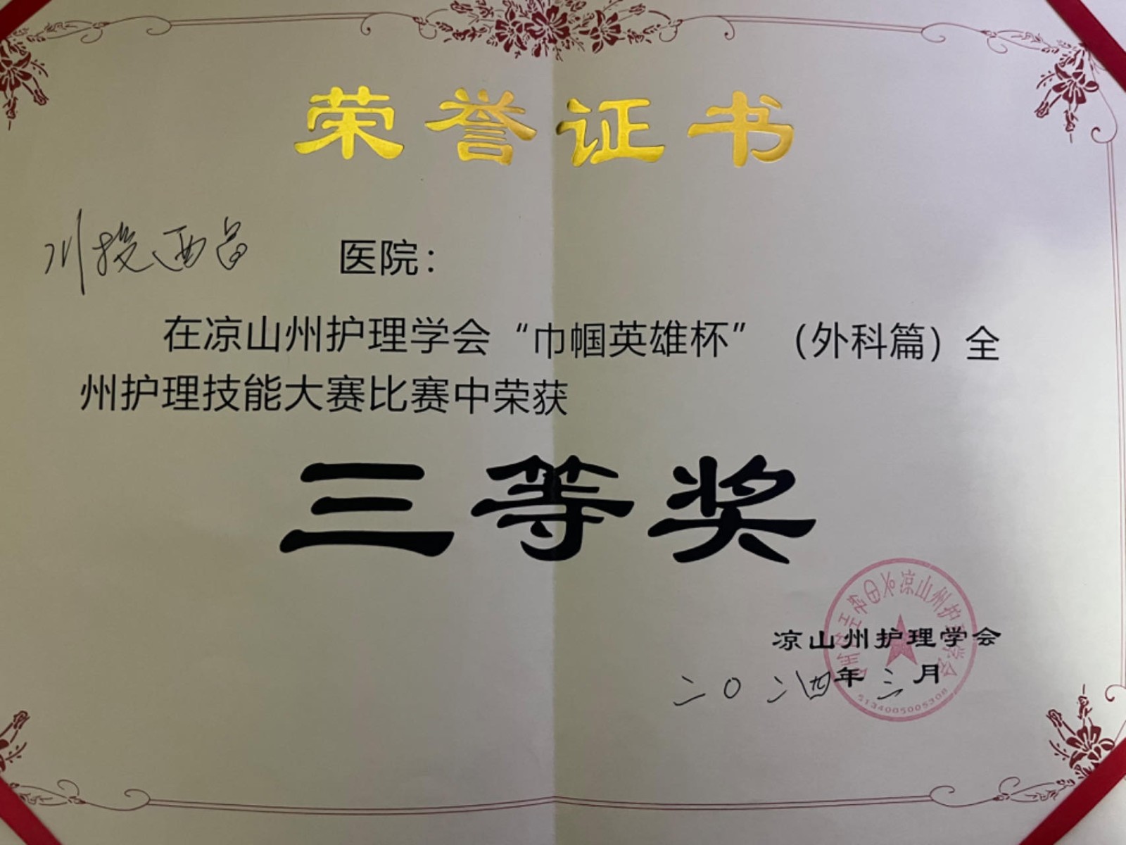 3月28日,涼山州護(hù)理學(xué)會(huì)“巾幗英雄杯”(外科篇)全州護(hù)理技能大賽在州舉辦,川投西昌醫(yī)院護(hù)理部督導(dǎo)員阿支石習(xí)莫帶隊(duì),楊彥蕾、鄧凡、孫夢(mèng)3名選手組成護(hù)理小組參加競(jìng)賽。
