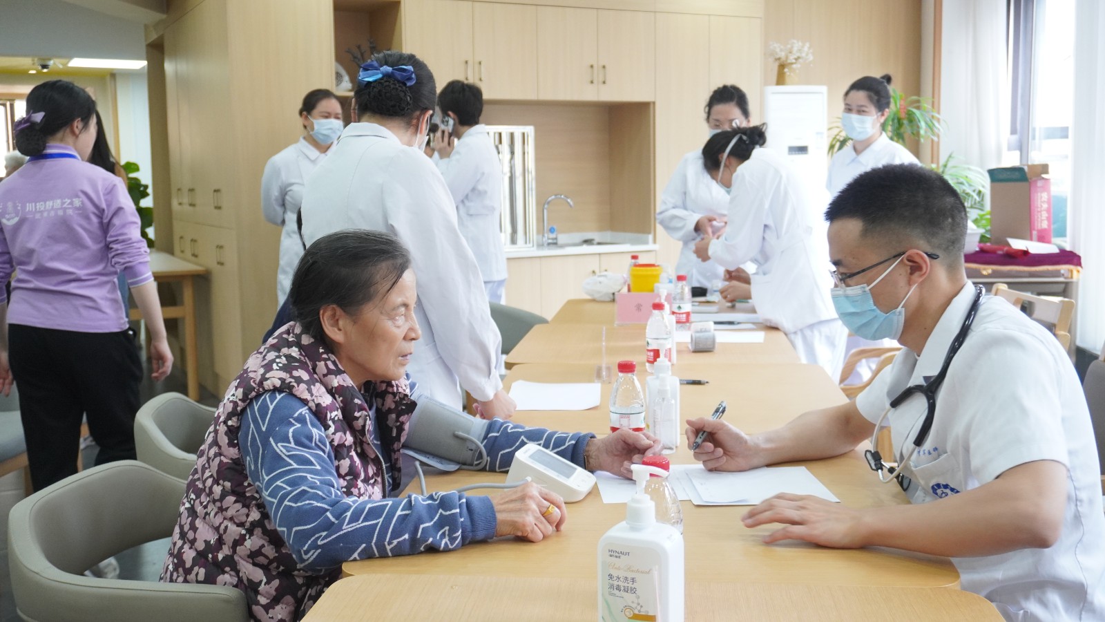 活動(dòng)中,成都上錦南府醫(yī)院/四川大學(xué)華西醫(yī)院上錦醫(yī)院麻醉手術(shù)中心的醫(yī)生護(hù)士們?yōu)槲浜顓^(qū)吉福社區(qū)和川投舒適之家·武侯吉福院長(zhǎng)者們進(jìn)行健康義診。醫(yī)護(hù)人員通過了解各位長(zhǎng)者的生活起居、基礎(chǔ)疾病的用藥及治療、日常康復(fù)等情況,為咨詢長(zhǎng)者提供專業(yè)化建議,并與養(yǎng)老機(jī)構(gòu)護(hù)理人員溝通長(zhǎng)者后續(xù)照護(hù)及康復(fù)計(jì)劃,切實(shí)將長(zhǎng)者個(gè)性化康復(fù)需求與機(jī)構(gòu)護(hù)理、醫(yī)療保障有機(jī)結(jié)合,為機(jī)構(gòu)及社區(qū)長(zhǎng)者安享健康幸福晚年生活保駕護(hù)航。