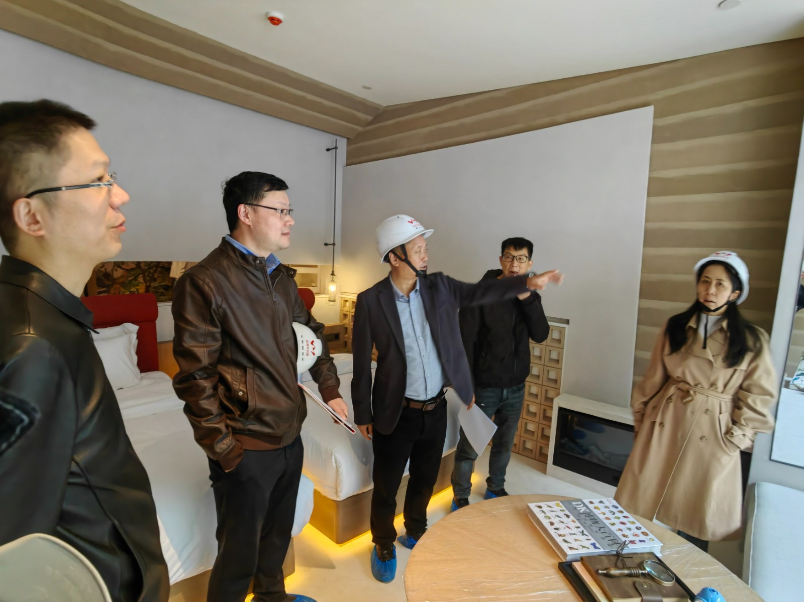 此次評(píng)審的樣板間為項(xiàng)目核心設(shè)施溫泉酒店主型客房,為做好評(píng)審,田灣河旅游公司精心策劃,組織酒店管理公司及設(shè)計(jì)、監(jiān)理、施工等參建單位專業(yè)技術(shù)人員組成評(píng)審組,現(xiàn)場(chǎng)對(duì)照設(shè)計(jì)效果圖,從平面布局、實(shí)物還原度、色彩搭配、施工質(zhì)量等方面對(duì)樣板間進(jìn)行全方位評(píng)審。經(jīng)過充分討論及意見交換,評(píng)審組一致認(rèn)為,樣板房整體還原度較高,基本與效果圖一致,同時(shí)對(duì)局部需優(yōu)化調(diào)整的地方提出了改進(jìn)意見建議。