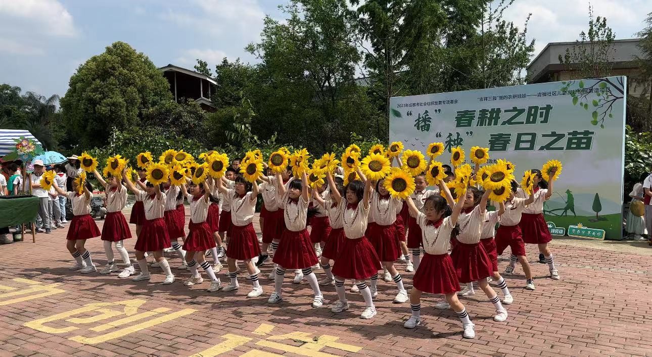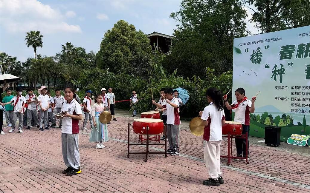 成都市磨子橋小學分校的師生們?yōu)榇焊顒臃钌暇时硌?。身心投入、聲情并茂的演出,成為活動中一道別樣的風景線,寄托著莘莘學子對春日播種季的憧憬與期待。