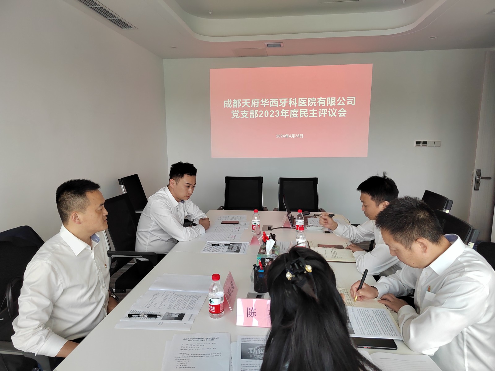4月25日,天府華西牙科黨支部召開(kāi)2023年度民主評(píng)議會(huì)議。天府華西牙科公司黨支部書(shū)記蘭吉主持會(huì)議,華西牙科黨委委員、紀(jì)委書(shū)記鄧云斌以普通黨員身份出席會(huì)議,天府華西牙科全體黨員參加會(huì)議。