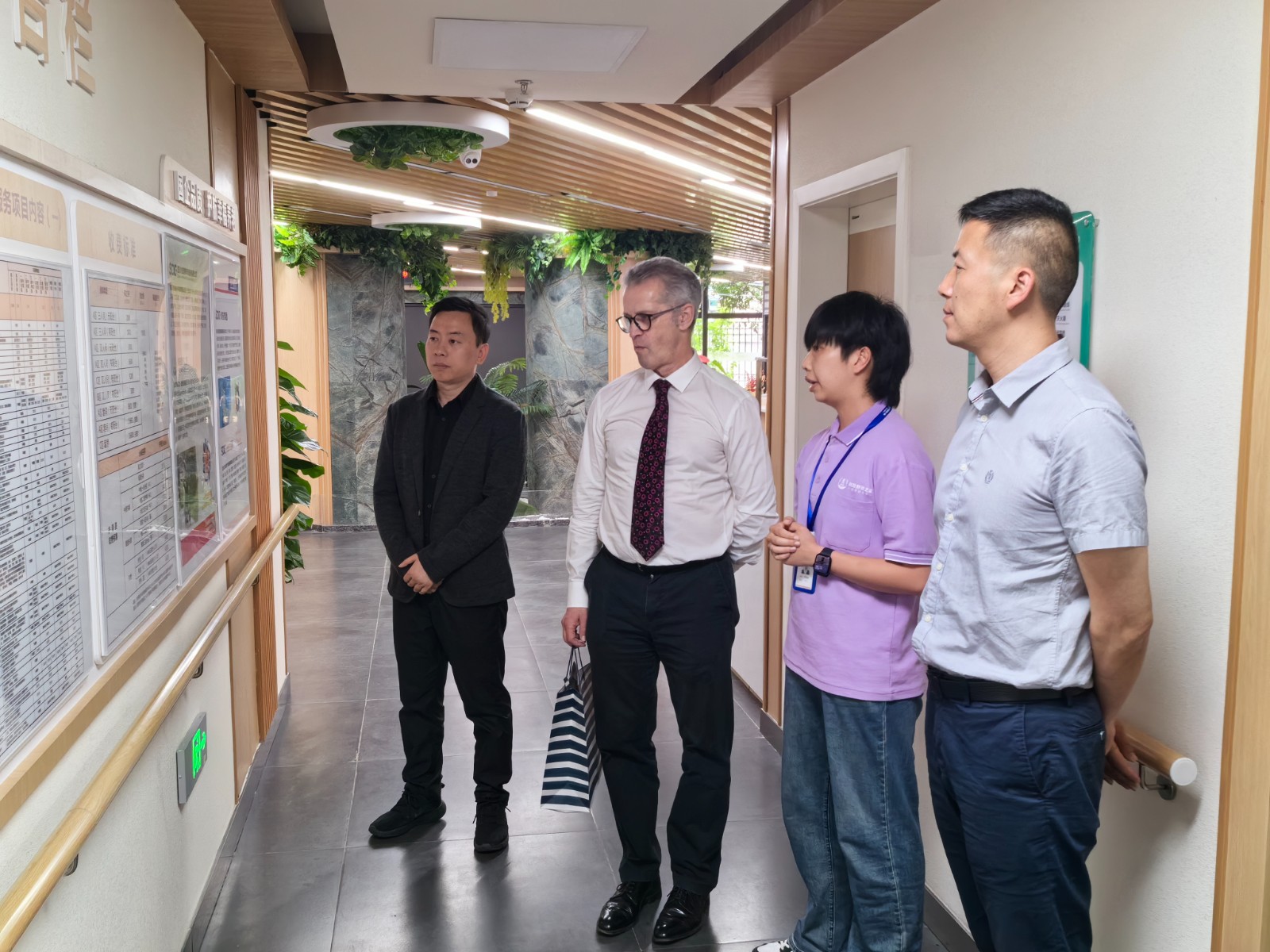4月29日,英國(guó)知名老年醫(yī)學(xué)專家、Age Care Technologies?(ACT)創(chuàng)始人Ian Philip教授到訪川投舒適之家·武侯吉福院。川投盛櫸公司黨支部書記、執(zhí)行董事、總經(jīng)理?xiàng)铒w陪同調(diào)研。