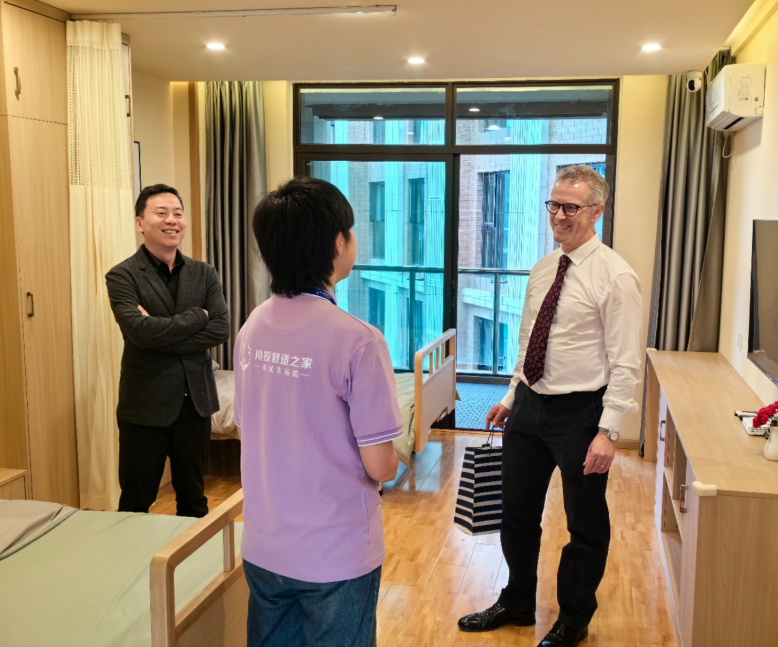楊飛對(duì)Ian Philip教授的到來(lái)表示熱烈歡迎,他表示,Ian Philip教授深耕老年醫(yī)學(xué)領(lǐng)域,在改善老年人生活質(zhì)量方面作出了重大貢獻(xiàn)。未來(lái)希望能加強(qiáng)與英國(guó)老年醫(yī)學(xué)專家團(tuán)隊(duì)的溝通與合作,通過ACT照護(hù)體系切實(shí)賦能“川投舒適之家”養(yǎng)老品牌價(jià)值創(chuàng)造,共同探索“社區(qū)-機(jī)構(gòu)-居家”養(yǎng)老服務(wù)發(fā)展的突破點(diǎn),實(shí)現(xiàn)高質(zhì)量發(fā)展。