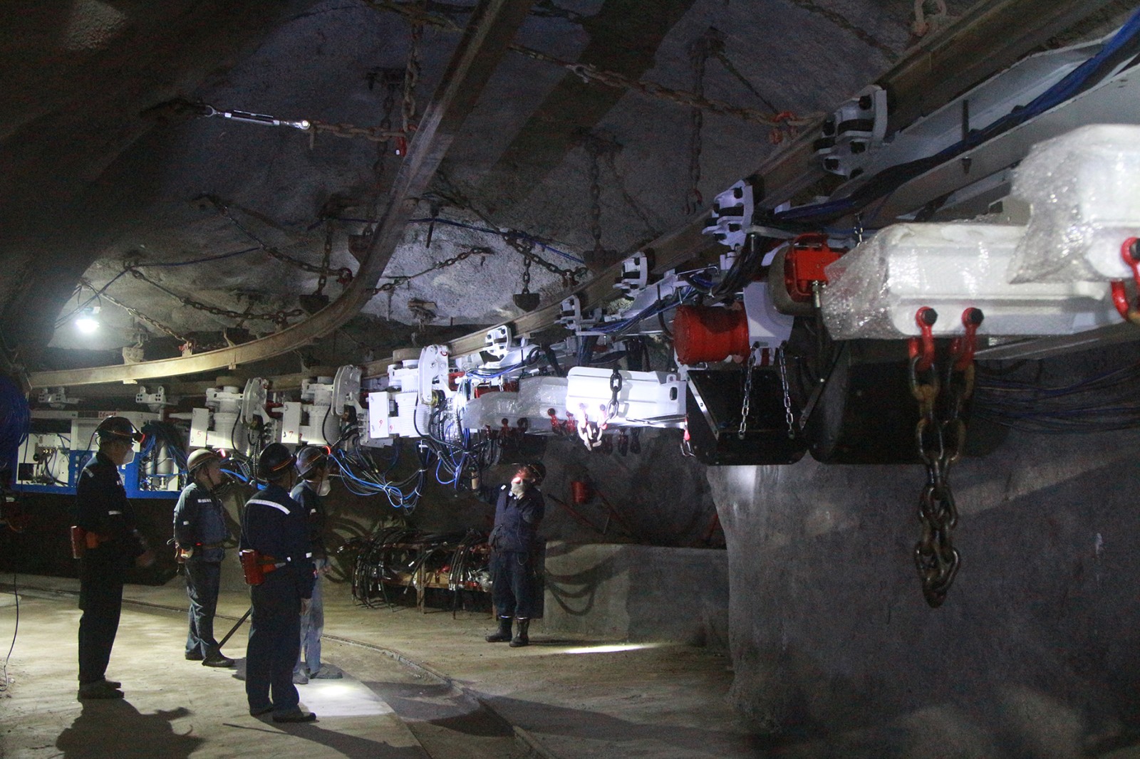 前期,嘉陽(yáng)煤礦組織多個(gè)科室進(jìn)行了機(jī)車預(yù)驗(yàn)收,實(shí)施了靜態(tài)和動(dòng)態(tài)檢查與測(cè)試,掘進(jìn)三隊(duì)在廠方技術(shù)人員的指導(dǎo)下進(jìn)行了一系列整改和機(jī)車試運(yùn)行,側(cè)重在31242材料道完成了機(jī)車組裝,并通過(guò)了25度龍坡提升能力驗(yàn)收,確保機(jī)車薄煤層巷道運(yùn)輸環(huán)境匹配。根據(jù)技術(shù)協(xié)議,該機(jī)車于5月10日至13日在33采區(qū)完成了重新組裝,形成了兩套獨(dú)立的列車運(yùn)行系統(tǒng),驗(yàn)收組再次全面檢查各項(xiàng)運(yùn)行指標(biāo)和廠方合同履約到位情況,最終認(rèn)定驗(yàn)收合格。