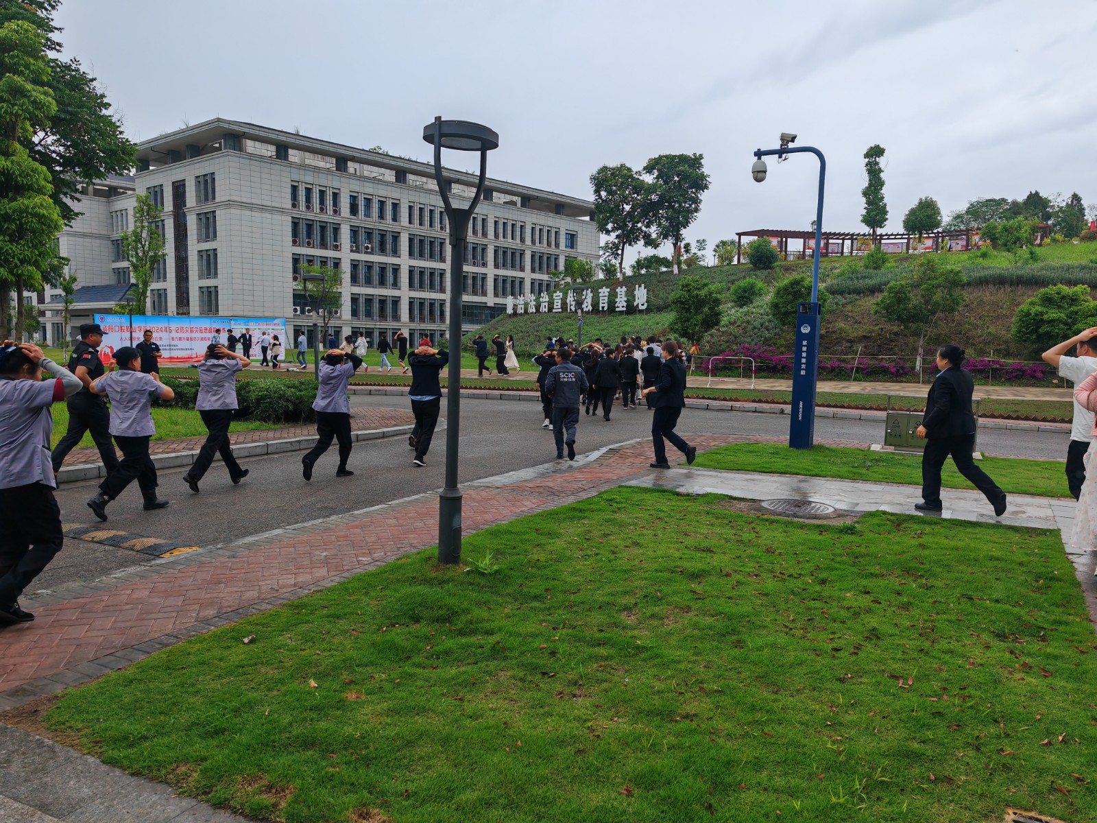 隨著警報(bào)聲響起,按照區(qū)域和樓層劃分,以班級(jí)為單位,在各班輔導(dǎo)員和后勤工勤單位工作人員的帶領(lǐng)下,同學(xué)們按照預(yù)先設(shè)定的疏散方案向指定區(qū)域進(jìn)行快速、有序、安全撤離。整個(gè)演練過程用時(shí)4分21秒,全體同學(xué)積極配合,沉著冷靜,一切行動(dòng)聽指揮,緊張有序地撤離至安全區(qū)域。