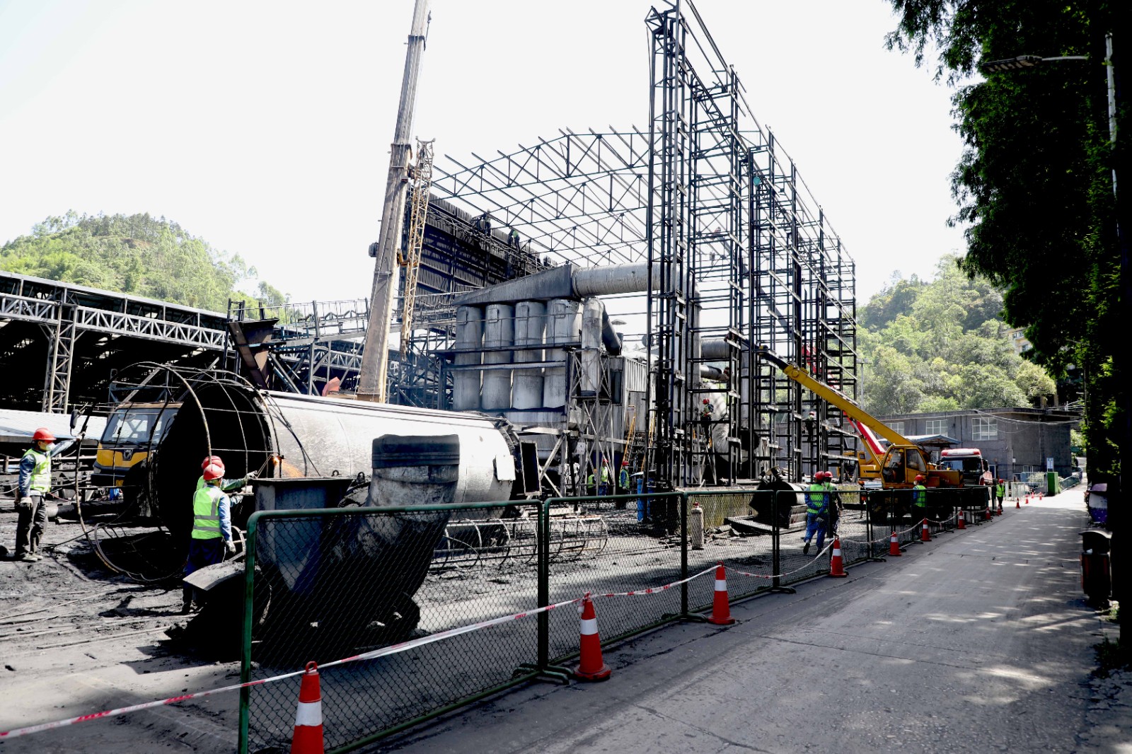 嘉陽煤礦風(fēng)選設(shè)備撤除工程由嘉陽集團機電分公司負責,在經(jīng)過前期物資準備、技安措施制訂、安全學(xué)習(xí)后,相關(guān)人員于5月7日進場開始施工。施工現(xiàn)場設(shè)置了安全警戒線、配備了專職安全員,采用大型吊車對風(fēng)選設(shè)備零部件進行固定,然后由電氧焊工進行切割分離,最后由吊車將零部件安全放置地面。撤除工程預(yù)計5月20日前完成。
