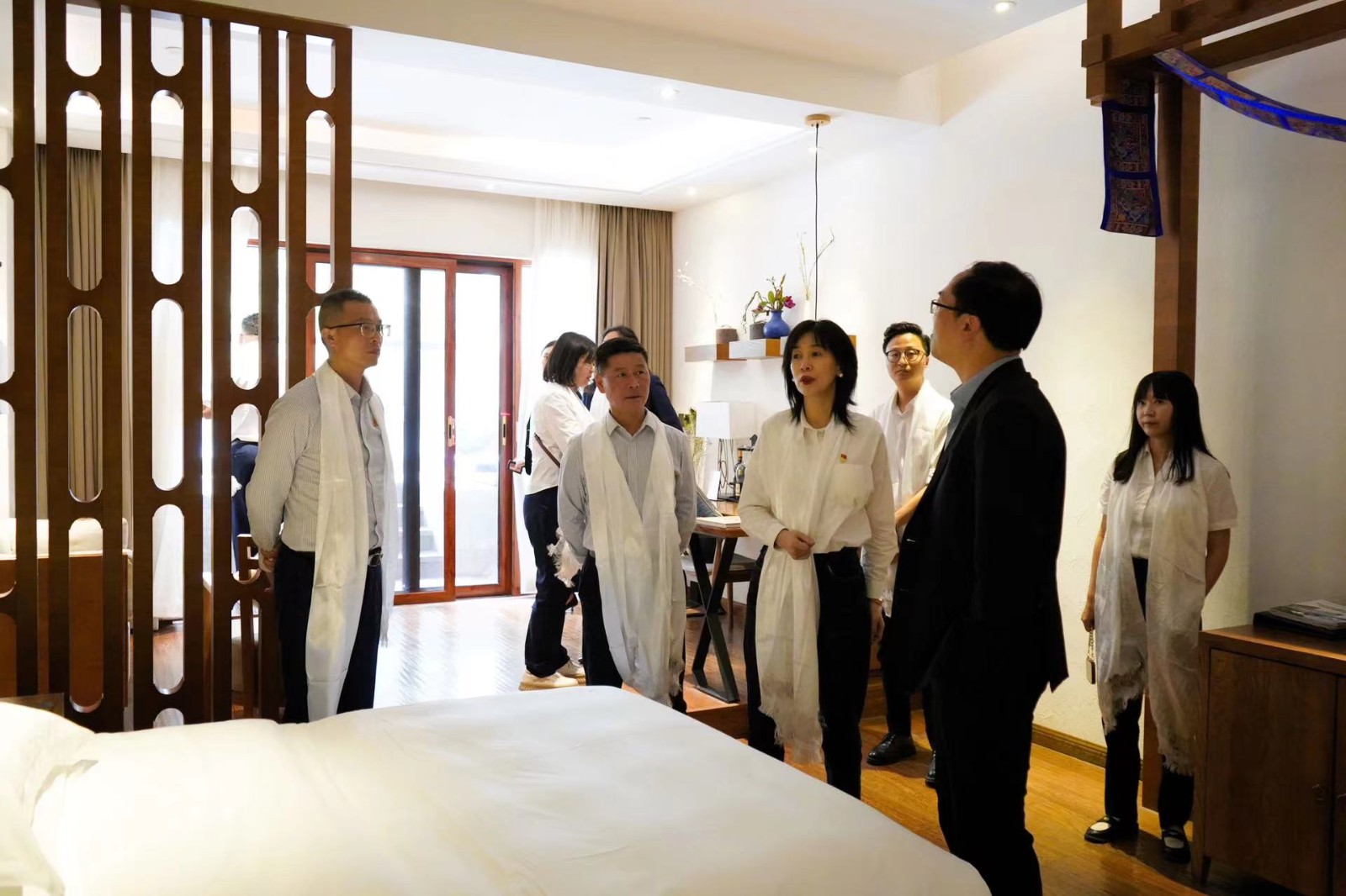 古爾溝公司董事長楊波對白蕾一行的到來表示熱烈歡迎,并就古爾溝酒店的運營管理情況作了詳細介紹。在楊波等人的陪同下,白蕾一行實地參觀了古爾溝酒店大堂、餐廳、會議及宴會廳等公共區(qū)域以及各類客房,并對其酒店在組織架構(gòu)、人員管理、設(shè)施配置、營銷渠道、業(yè)務(wù)營收、安全生產(chǎn)、科技投入等方面的實際情況進行調(diào)研。針對酒店在產(chǎn)業(yè)結(jié)構(gòu)優(yōu)化、發(fā)展戰(zhàn)略調(diào)整、經(jīng)營模式變革、業(yè)務(wù)開拓創(chuàng)新等方面面臨的困境和有效的經(jīng)驗做法雙方開展了深入的交流座談。