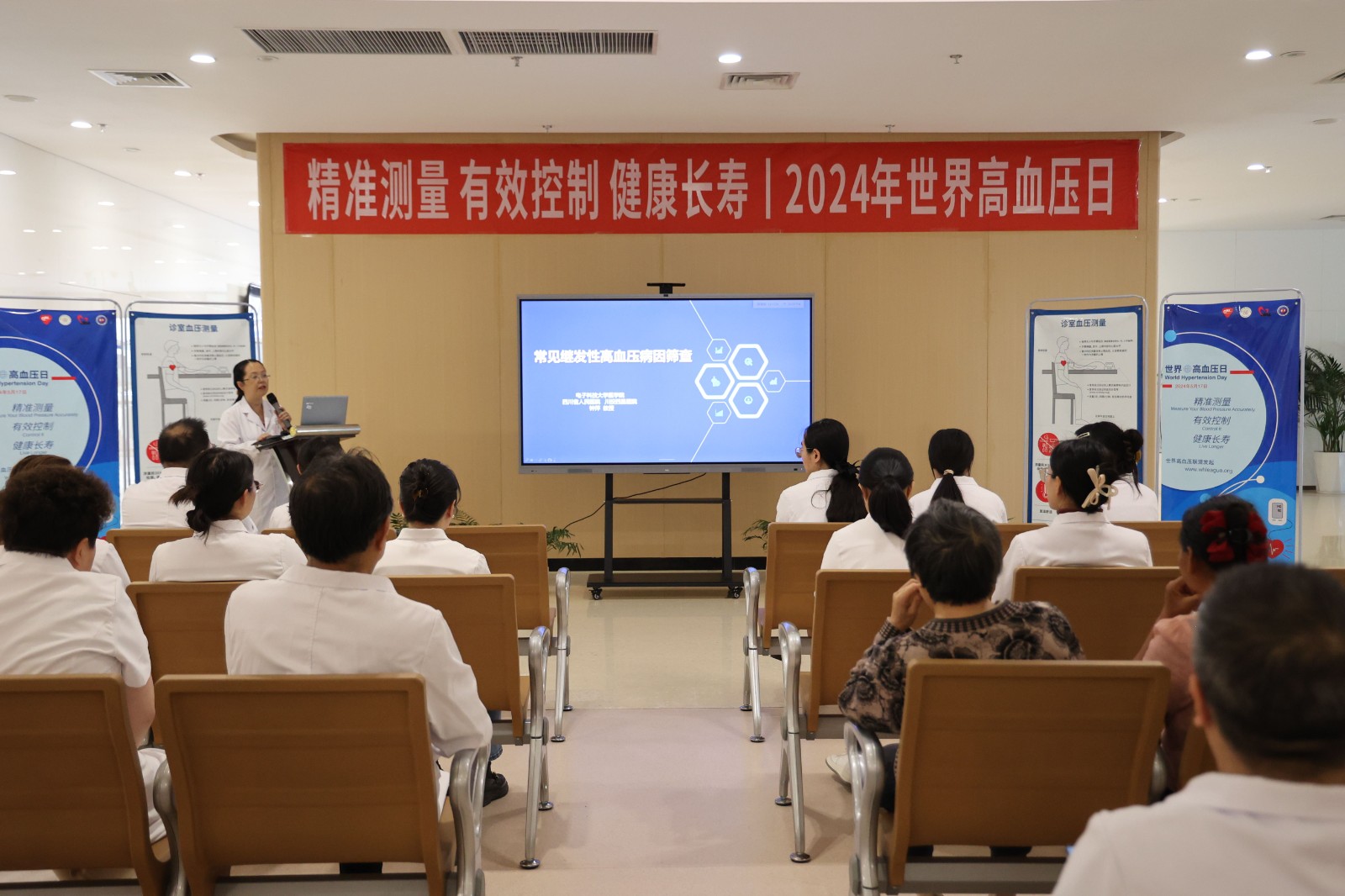 5月15日,醫(yī)院舉辦了三場關(guān)于高血壓的健康教育講座,內(nèi)容主要涵蓋《繼發(fā)性高血壓篩查》《高血壓誤區(qū)知多少》《高血壓與心腦血管疾病預(yù)防》三個(gè)方面。專家們深入淺出地講解了高血壓的成因、危害及預(yù)防方法,現(xiàn)場聽眾紛紛表示受益匪淺。