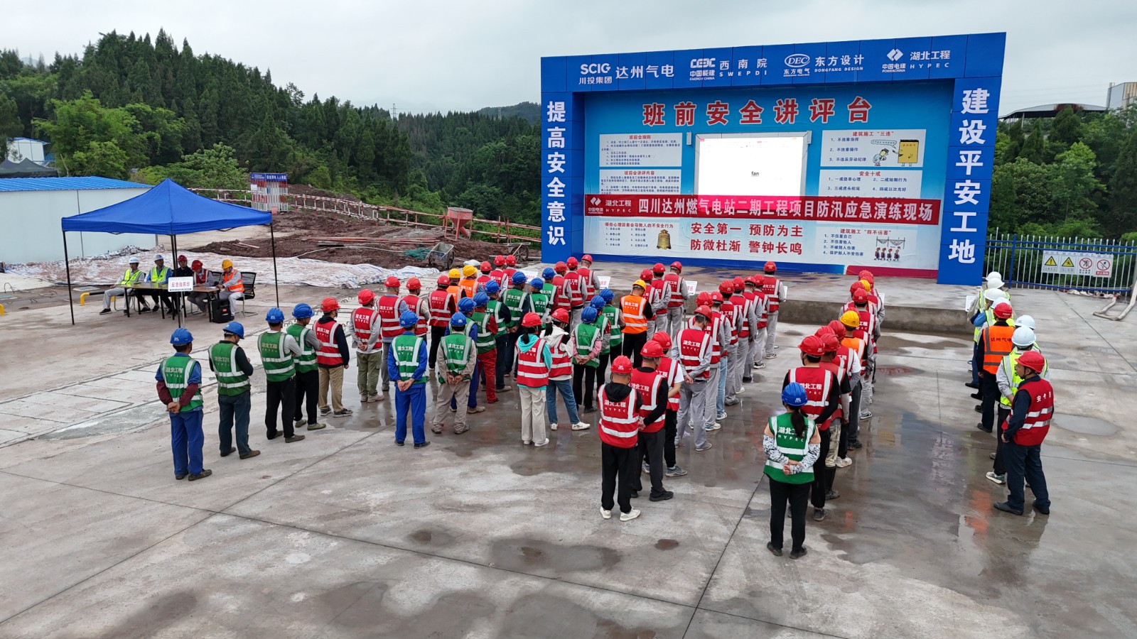 為全面落實省委、省政府關(guān)于地震災(zāi)害及防汛工作部署要求,進(jìn)一步提升應(yīng)急響應(yīng)速度和險情處置能力,5月19日,達(dá)州氣電組織二期項目監(jiān)理公司、EPC項目部及各施工隊伍在二期項目施工現(xiàn)場開展防洪防汛暨防地質(zhì)災(zāi)害應(yīng)急演練。演練活動由EPC總承包方安全總監(jiān)簡開祥主持。演練總指揮由達(dá)州氣電黨總支委員、副總經(jīng)理管立擔(dān)任。