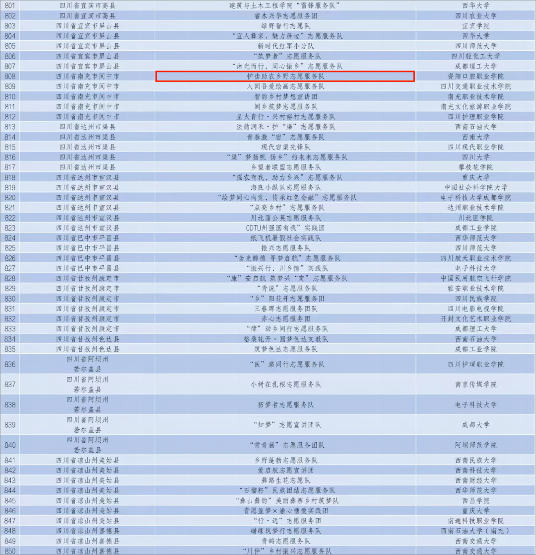 為深入學(xué)習(xí)宣傳貫徹習(xí)近平新時代中國特色社會主義思想和黨的二十大精神,服務(wù)全面推進(jìn)鄉(xiāng)村振興,動員引導(dǎo)青年學(xué)生投身鄉(xiāng)村振興一線,中國農(nóng)業(yè)發(fā)展銀行、團(tuán)中央青年志愿者行動指導(dǎo)中心聯(lián)合發(fā)布《關(guān)于遴選2024年全國大學(xué)生“鄉(xiāng)村振興”志愿服務(wù)團(tuán)的公告》。 5月28日,中國青年志愿者協(xié)會公布了2024年全國大學(xué)生志愿服務(wù)團(tuán)隊入選名單。其中,資陽口腔職業(yè)學(xué)院"護(hù)齒助農(nóng)鄉(xiāng)野志愿服務(wù)團(tuán)隊"與來自南京航空航天大學(xué)、華中科技大學(xué)、吉林大學(xué)、四川大學(xué)等748所高校的1000支大學(xué)生志愿服務(wù)團(tuán)隊共同入選。