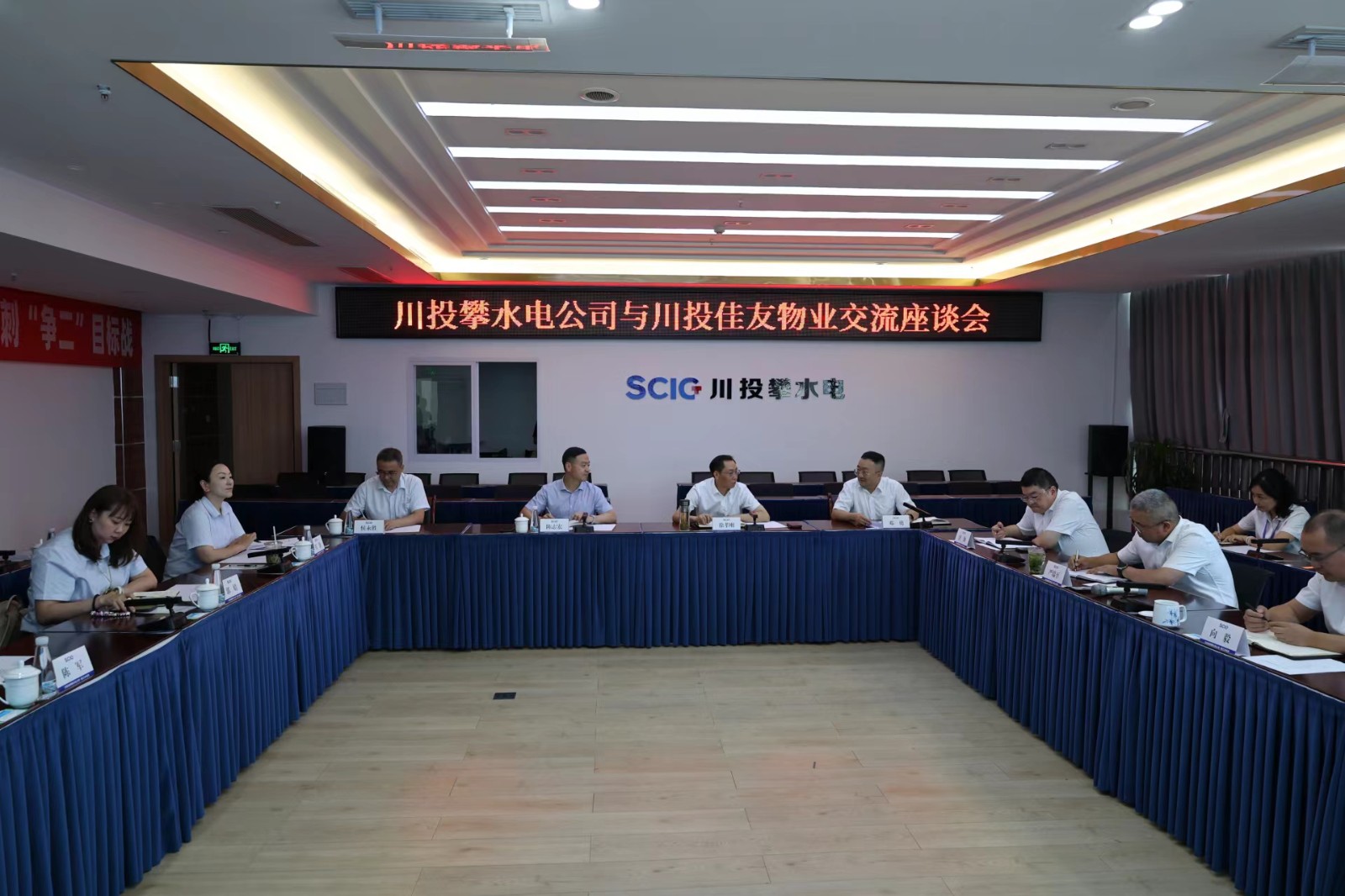 隨后,陳志宏一行與川投能源攀水電公司進(jìn)行了交流座談會(huì),川投能源副總經(jīng)理、攀水電公司黨總支書記、董事長(zhǎng)徐孝剛對(duì)陳志宏一行的到來表示歡迎,感謝川投佳友為攀水電公司提供高品質(zhì)的物業(yè)服務(wù),同時(shí)希望今后雙方加強(qiáng)深度合作,讓川投佳友銀江水電站項(xiàng)目“做大、做強(qiáng)”。陳志宏表示,感謝業(yè)主對(duì)川投佳友的理解、支持和信任,川投佳友將進(jìn)一步提升服務(wù)品質(zhì),樹立佳友的品牌形象,讓業(yè)主放心、安心。