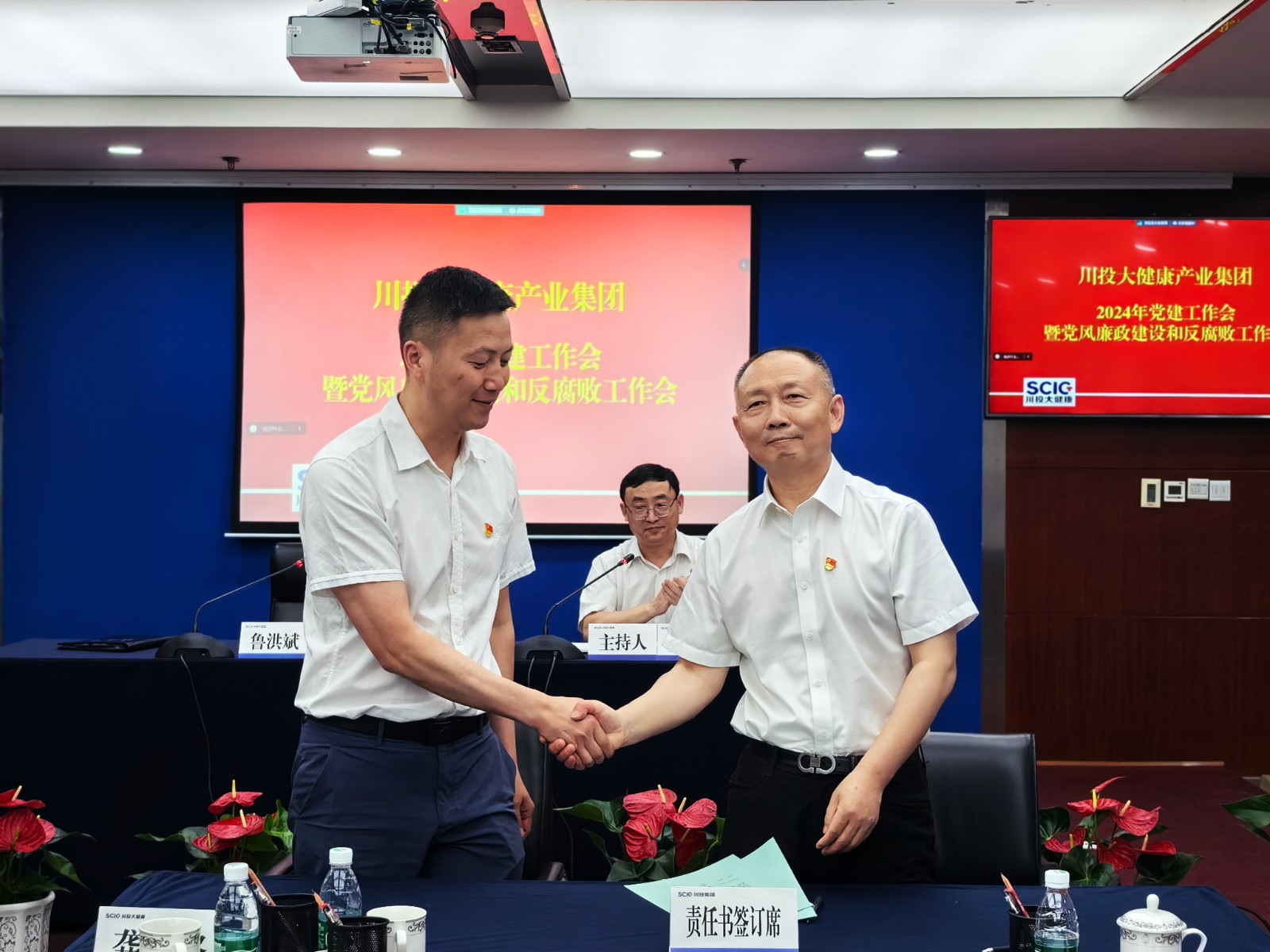 會議學(xué)習了二十屆中央紀委三次全會、 十二屆四川省紀委三次全會精神和全國全省組織部長、宣傳部長會議精神。姜波通報了當前黨建工作開展情況,部署了2024年度黨風廉政建設(shè)和反腐敗工作。魯洪斌代表川投大健康產(chǎn)業(yè)集團領(lǐng)導(dǎo)班子作了2024年度個人廉潔公開承諾,并分別與領(lǐng)導(dǎo)班子、部門、所屬公司簽訂了廉政建設(shè)責任書。