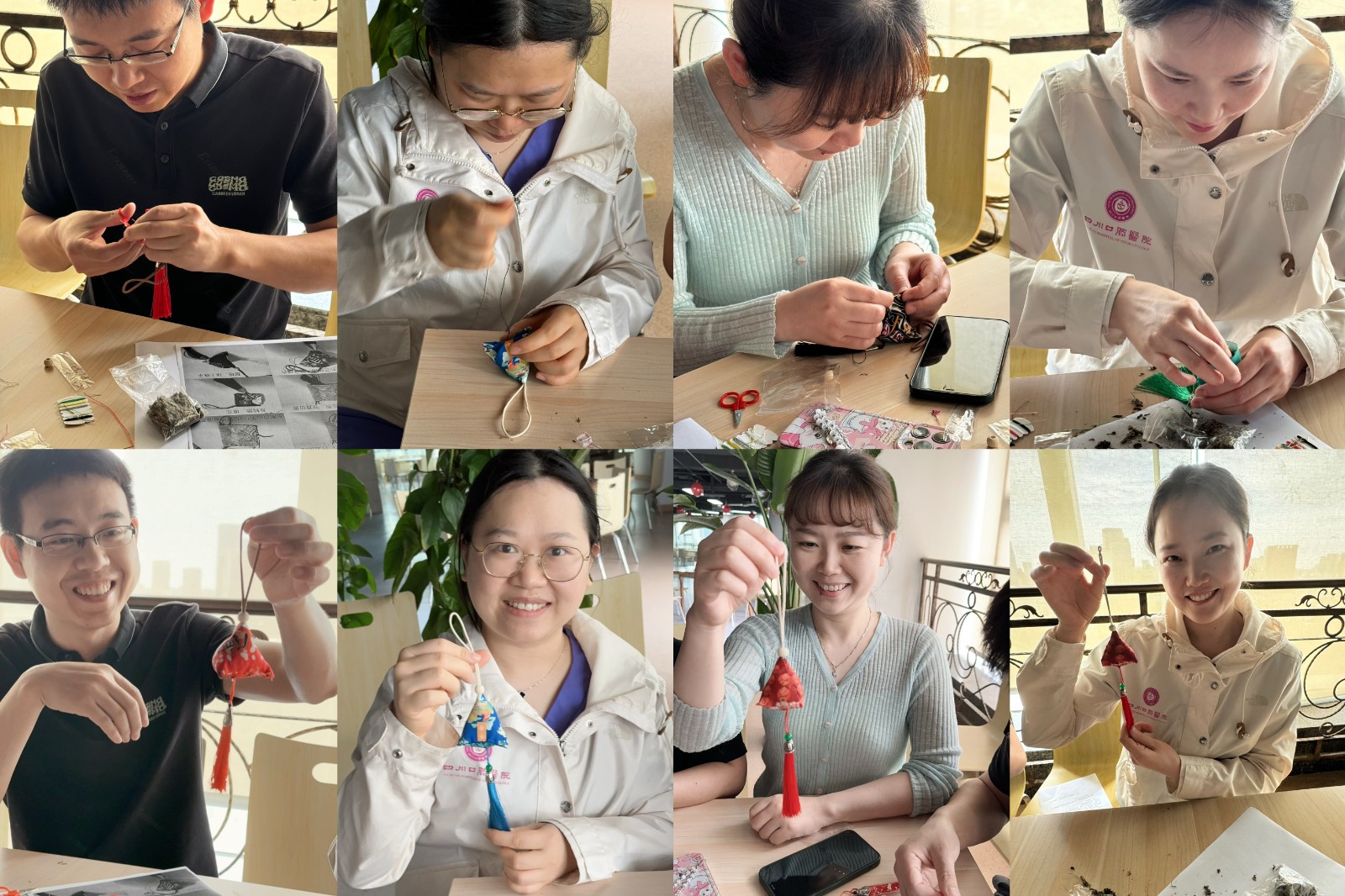 誦讀活動(dòng)后,組織黨員、團(tuán)員手工制作香囊。經(jīng)過(guò)穿針引線、縫邊、裝艾草、封口、定型等工序后,完成了香囊制作。大家把制作好的精美香囊展示出來(lái),一起交流欣賞,傳達(dá)著幸福安康的美好愿望。