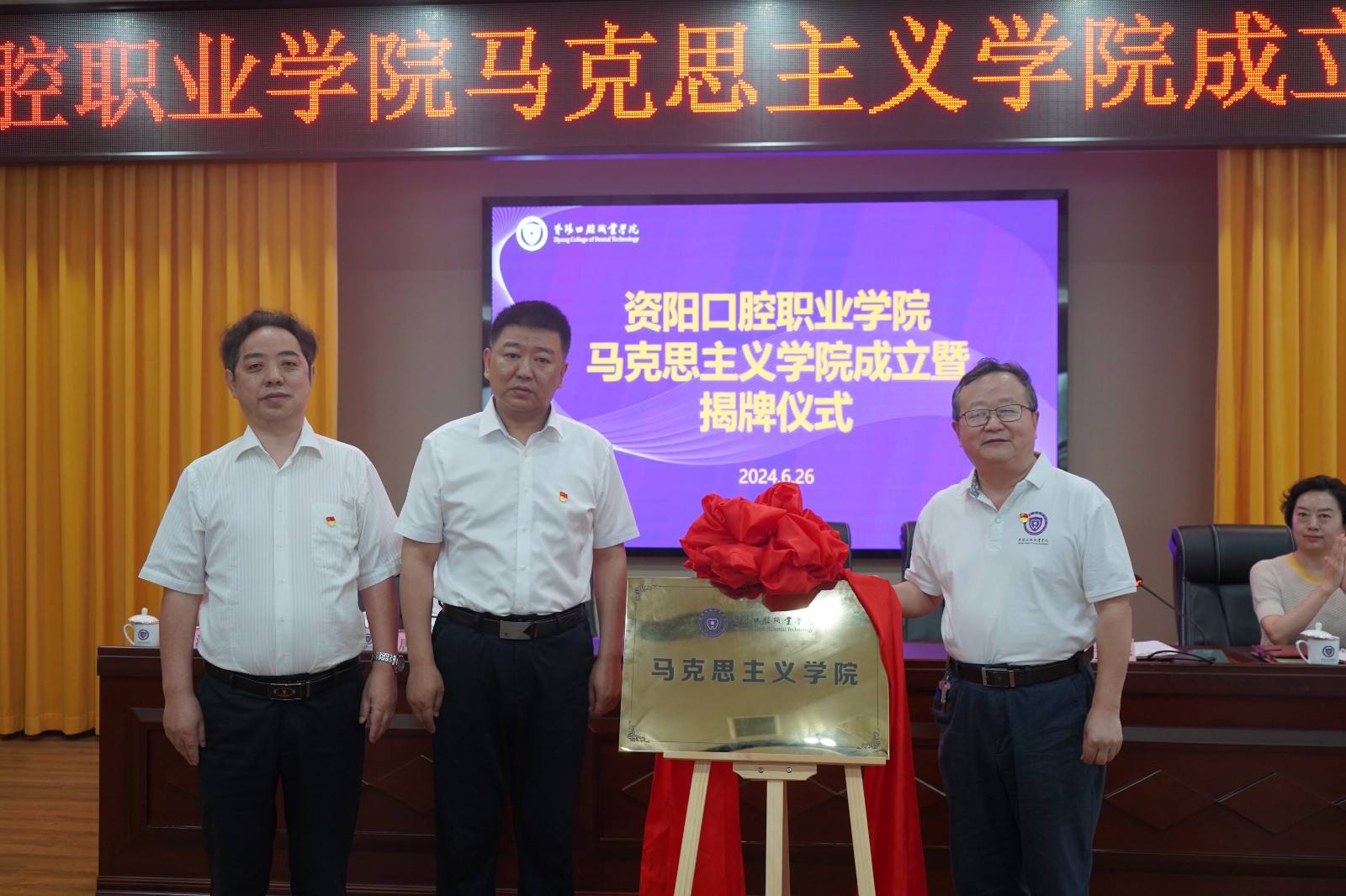 為深入學習貫徹習近平新時代中國特色社會主義思想和習近平總書記對學校思政課建設的重要指示精神,認真落實中央《關于加強新時代馬克思主義學院建設的意見》要求,推動學院馬克思主義學院建設,6月26日上午,資陽口腔職業(yè)學院舉行馬克思主義學院成立暨揭牌儀式。學院在家領導出席,各系部負責人、教師代表、全體思政教師和青馬工程班學生代表參加。