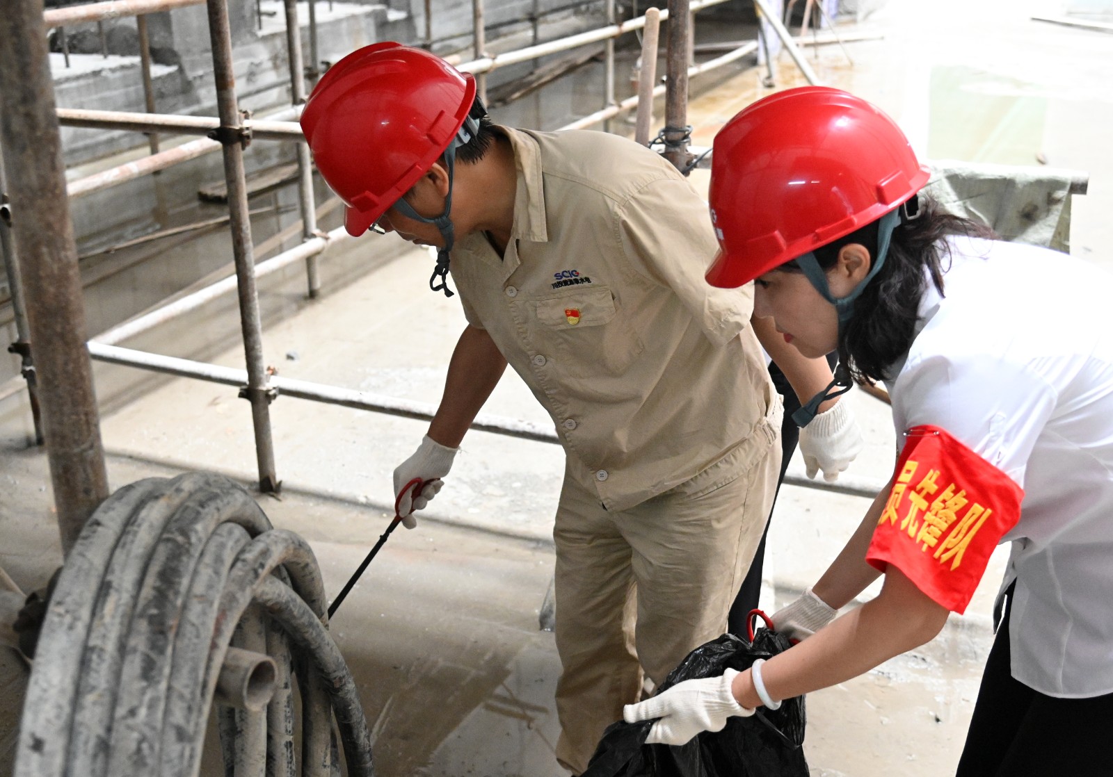大家來到銀江水電站壩頂施工通道,對現(xiàn)場吊裝點及各施工作業(yè)面衛(wèi)生清潔區(qū)域進行了清掃分工,各支部黨員同志沖鋒在前,主動帶領(lǐng)其他黨員同志、志愿者對銀江水電站壩頂、壩頂至安裝間通道、安裝間、副廠房等區(qū)域進行了衛(wèi)生清掃、垃圾清運,并協(xié)調(diào)了臨時堆放物資、安裝構(gòu)建的整理吊裝等,為后期轉(zhuǎn)子支架到達現(xiàn)場營造了整潔、便捷的環(huán)境。