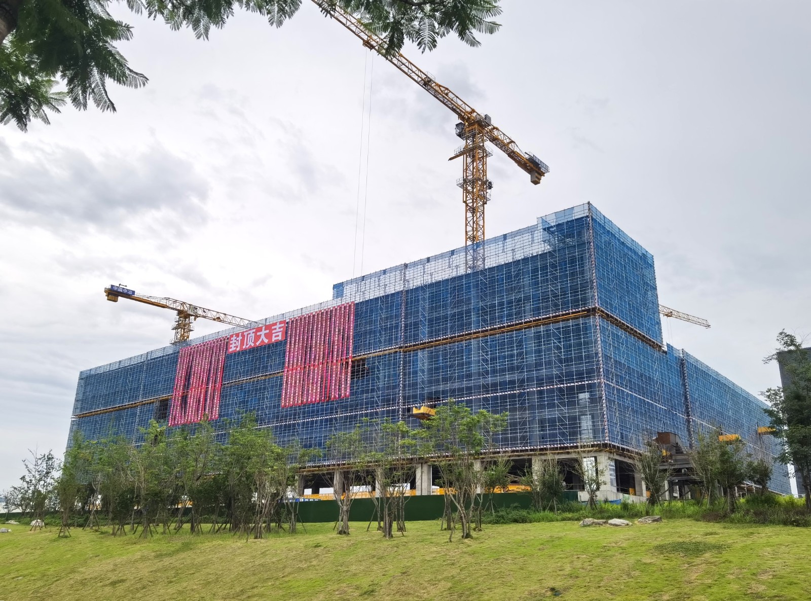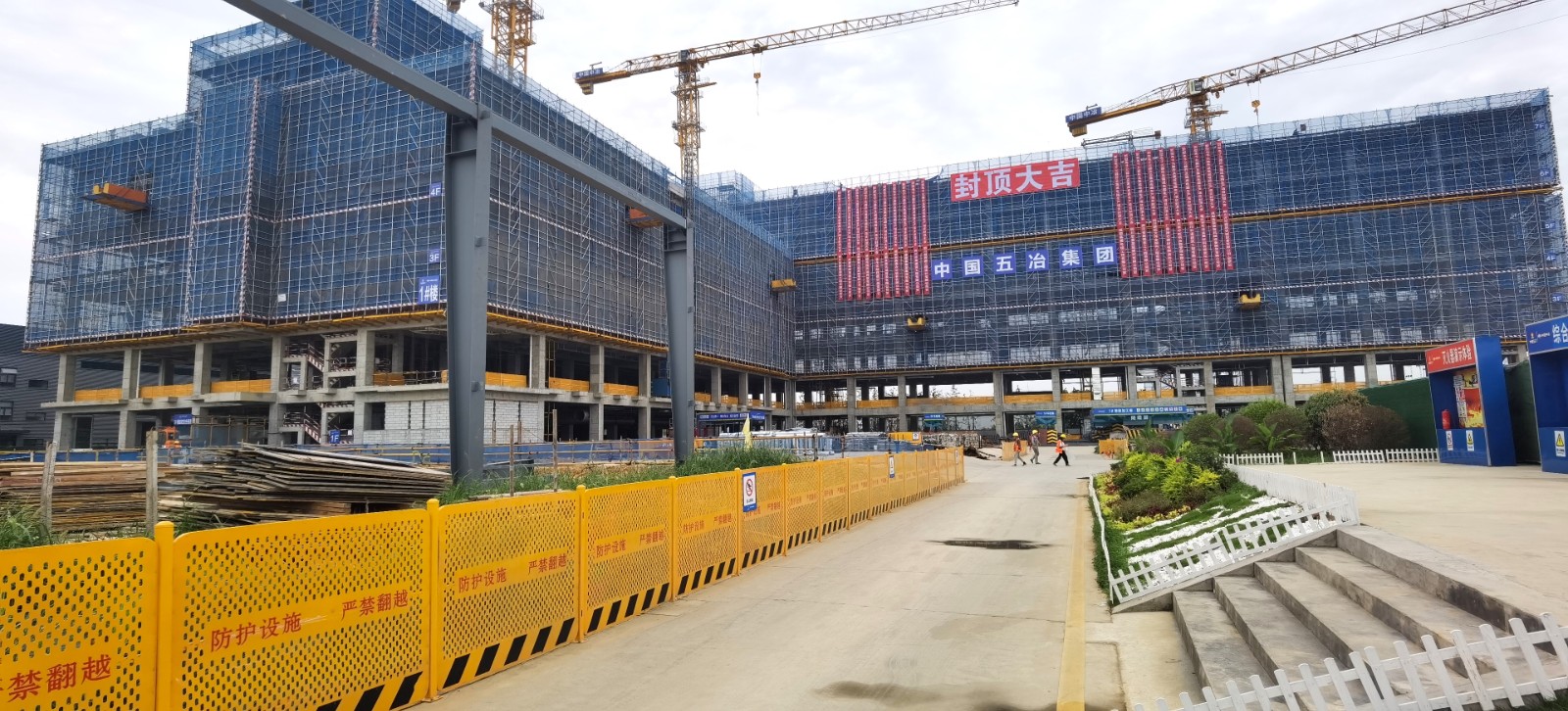面對諸多復(fù)雜施工難點,項目團隊實時梳理進度,不斷優(yōu)化施工方案,科學(xué)組織安排流水作業(yè),在嚴(yán)把安全生產(chǎn)關(guān)的同時加快施工進度。建設(shè)期間,項目團隊先后克服了黃色預(yù)警天氣管控超30天、配合成都地鐵18號線建設(shè)停電8天、夏季有機廢氣VOCs管控等諸多影響因素,在一號樓整體提前沖出“正負(fù)零”的基礎(chǔ)上,提前實現(xiàn)項目一號樓主體結(jié)構(gòu)封頂?shù)闹匾?jié)點目標(biāo)。
