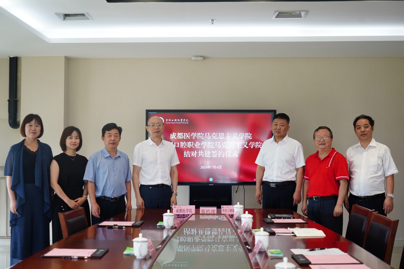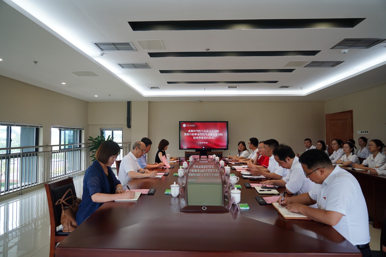 為深入貫徹習(xí)近平總書(shū)記關(guān)于思想政治理論課建設(shè)的重要論述,認(rèn)真落實(shí)中共四川省委教育工委、四川省教育廳關(guān)于開(kāi)展四川省高校馬克思主義學(xué)院結(jié)對(duì)共建行動(dòng)的文件精神,進(jìn)一步推進(jìn)馬克思主義學(xué)院高質(zhì)量建設(shè),近日,成都醫(yī)學(xué)院與資陽(yáng)口腔職業(yè)學(xué)院簽訂結(jié)對(duì)共建馬克思主義學(xué)院協(xié)議。成都醫(yī)學(xué)院馬克思主義學(xué)院院長(zhǎng)張俊、黨總支書(shū)記張首先,學(xué)院黨委書(shū)記、理事長(zhǎng)張中偉,院長(zhǎng)萬(wàn)呼春、馬克思主義學(xué)院執(zhí)行院長(zhǎng)陳思俊出席會(huì)議,學(xué)院各部門(mén)負(fù)責(zé)人、全體思政教師參加。