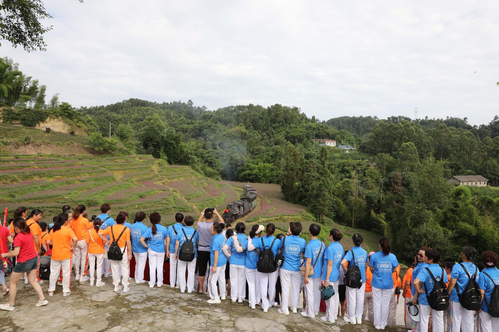 在啟動儀式上,嘉陽集團黨委書記、董事長杜勤祝賀芭石鐵路建成通車65周年,并宣布小火車“千日紅花季”正式啟動。據(jù)《嘉陽集團志》記載,65年前,在上萬人歷時一年的艱苦奮戰(zhàn)后,芭石鐵路建成通車。從此,嘉陽小火車便承載著礦工與周邊村民的生計與希望奔馳在19.84公里的鐵路沿線上。65年來,它見證了沿線村民的婚喪嫁娶、喜怒哀樂,歷經(jīng)了嘉陽轉(zhuǎn)型發(fā)展的陣痛,實現(xiàn)了從礦工與村民進出大山的交通工具到工業(yè)旅游的華麗轉(zhuǎn)身,煥發(fā)出了蓬勃的生機。