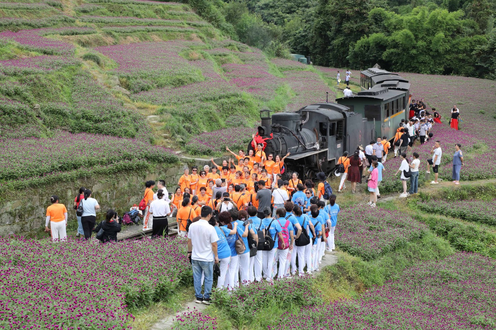 7月12日,在嘉陽·桫欏湖旅游景區(qū)芭石鐵路通車65周年紀念日到來之際,嘉陽小火車“千日紅花季”啟動。這是今年以來,嘉陽小火車繼“油菜花花季”“杜鵑花花季”之后打造的“花開金犍為 多彩慢嘉陽”的旅游第三季。