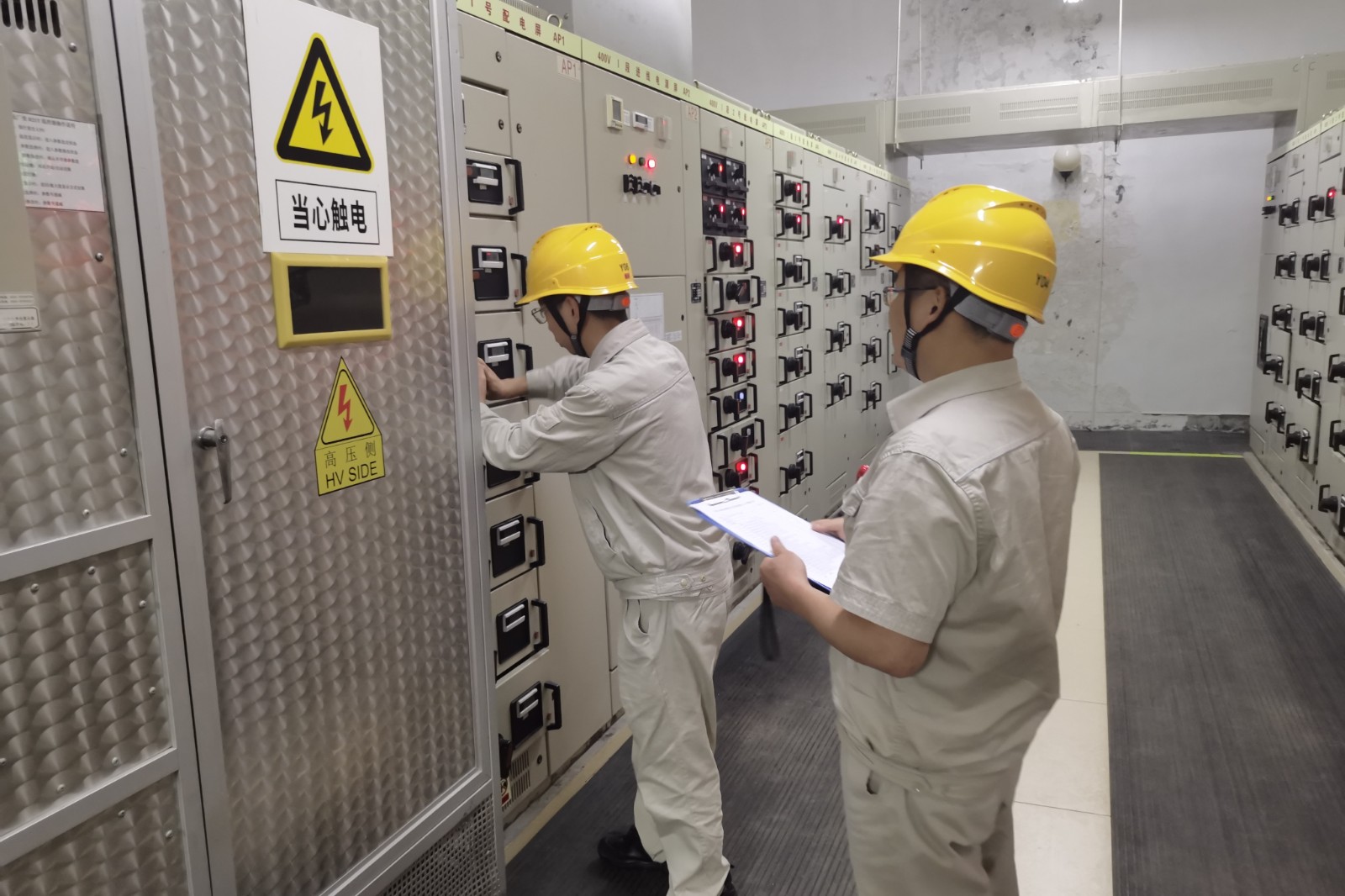應(yīng)急備用電源帶廠用負(fù)荷試驗(yàn)需要在站內(nèi)廠用電全停情況下進(jìn)行,為確保站內(nèi)重要設(shè)備如直流、通信、保護(hù)、油壓系統(tǒng)等的供電安全,同時(shí)保障站上值班人員生活和搶修施工用電,公司高度重視,提前籌劃,結(jié)合現(xiàn)場(chǎng)廠用設(shè)備接線情況,組織討論并編制了《田灣河流域三站柴油發(fā)電機(jī)組帶廠用負(fù)荷試驗(yàn)方案》。啟動(dòng)試驗(yàn)前,發(fā)電部組織人員熟悉試驗(yàn)方案和注意事項(xiàng),明確風(fēng)險(xiǎn)防控措施,并做好人員分工安排和各項(xiàng)準(zhǔn)備工作。試驗(yàn)開(kāi)始后,在公司統(tǒng)一指揮下,運(yùn)行與檢修各專業(yè)人員密切配合,在各重點(diǎn)部位安排專人監(jiān)視、操作,按方案流程完成了廠用母線負(fù)荷轉(zhuǎn)移、廠用母線停電、柴油發(fā)電機(jī)啟動(dòng)、核對(duì)相序、廠用母線充電、負(fù)荷逐級(jí)送電、啟動(dòng)設(shè)備等各項(xiàng)試驗(yàn)步驟。試驗(yàn)過(guò)程中,柴油發(fā)電機(jī)承受了特定負(fù)荷的考驗(yàn),包括中低壓氣機(jī)、調(diào)速器油泵、球閥系統(tǒng)油泵等重要設(shè)備供電需求。同時(shí)發(fā)電部運(yùn)行人員對(duì)發(fā)電機(jī)的運(yùn)行參數(shù)進(jìn)行了密切監(jiān)測(cè),包括電壓、電流、頻率、油溫、油壓等,為柴油發(fā)電機(jī)帶廠用負(fù)荷試驗(yàn)順利完成保駕護(hù)航。