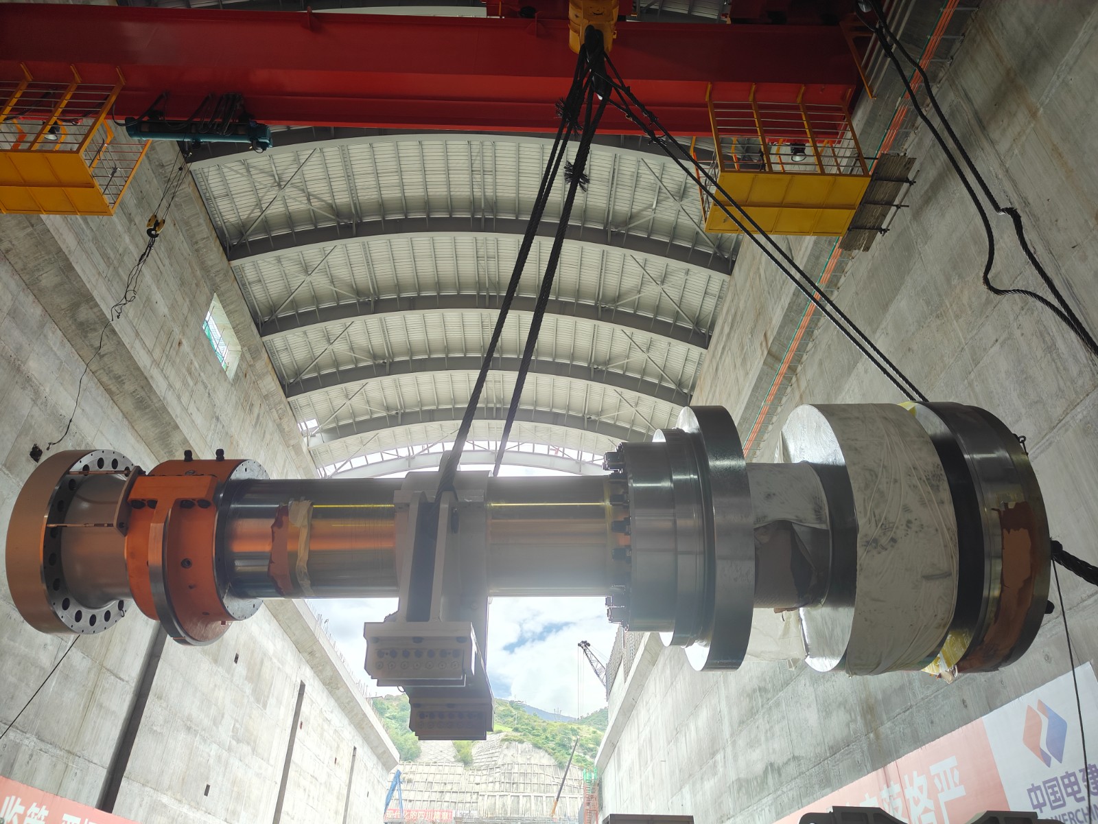 本次吊裝,一是嚴把質(zhì)量關口,清理作業(yè)中,機電安裝人員對主軸各加工表面油脂、灰塵、銹蝕、毛刺等雜物進行了徹底清理;二是嚴守安全底線,吊裝前,為確保大件吊裝作業(yè)高質(zhì)量完成,相關人員精心組織,明確責任分工,結(jié)合吊裝作業(yè)場地實際情況,認真研討,反復論證,細化吊裝方案;三是落實監(jiān)護制度,吊裝中,公司黨總支副書記、總經(jīng)理吳巍嶼帶隊堅守吊裝作業(yè)現(xiàn)場進行督查,確保做好安全技術交底,安排專人全過程進行安全監(jiān)護,整個吊裝作業(yè)現(xiàn)場嚴格執(zhí)行吊裝作業(yè)方案和安全措施。確保了此次主軸吊裝圓滿成功。