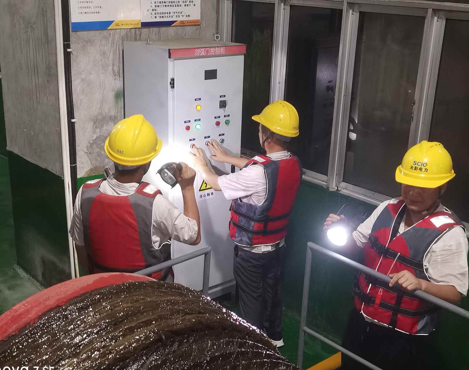 汛情就是命令,防汛就是責(zé)任,對于天彭電力人來說,這注定是個不眠之夜。公司領(lǐng)導(dǎo)現(xiàn)場指揮,及時處置各類突發(fā)情況,值班人員兵分三路、各司其職,一路駐守控制室,密切關(guān)注雨情、水情變化,做好信息收集和傳達(dá);一路前往防汛重點部位進(jìn)行巡視檢查,確保設(shè)備設(shè)施運行正常;一路做好應(yīng)急搶險準(zhǔn)備。