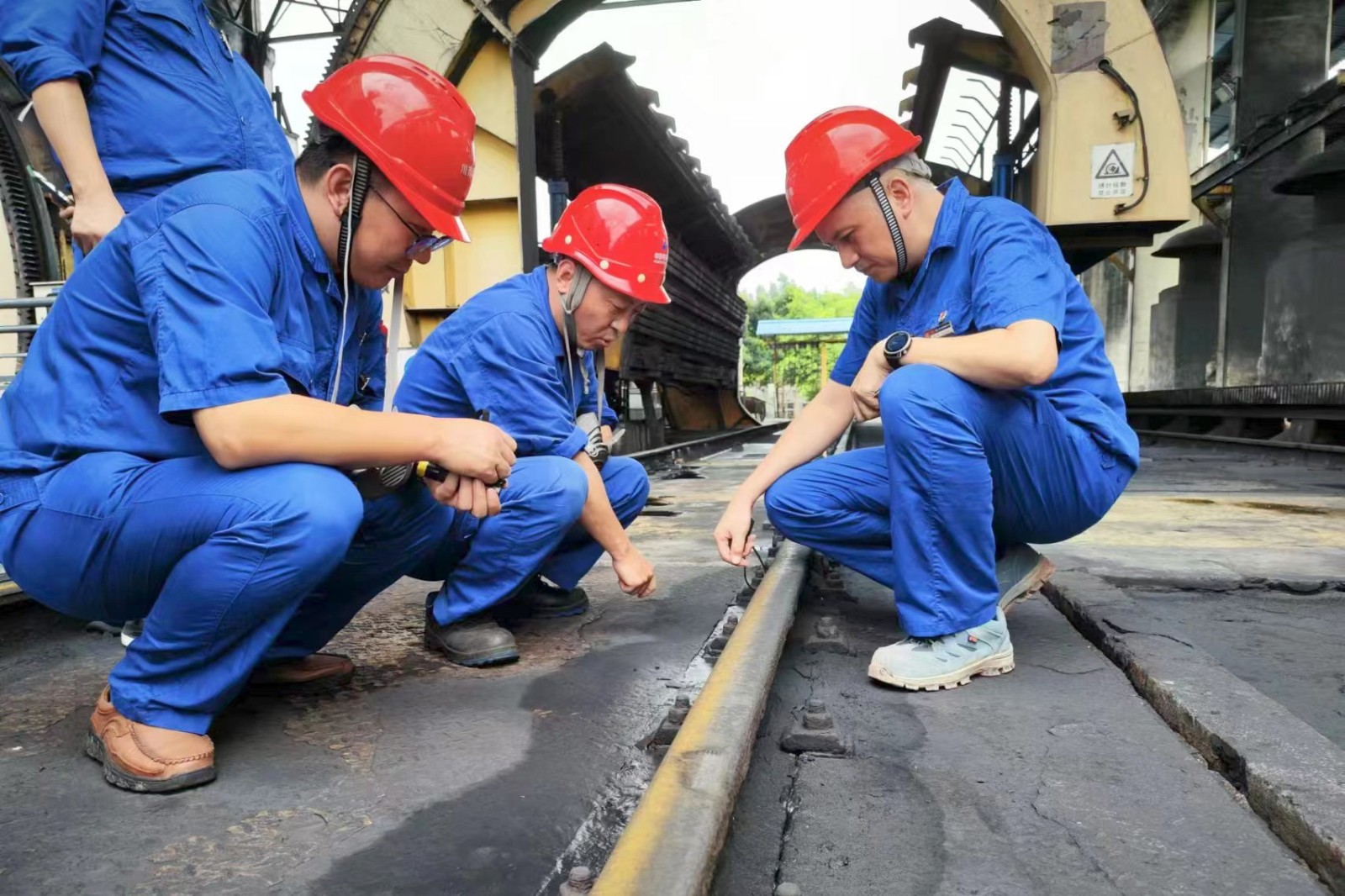 在查看儲煤場斗輪機(jī)后,陳嵩強(qiáng)調(diào):今年以來,機(jī)組接帶負(fù)荷高,輸煤系統(tǒng)長期處于高負(fù)荷運轉(zhuǎn)狀態(tài),相關(guān)部門要持續(xù)抓好設(shè)備運行中檢查,及早發(fā)現(xiàn)問題,及時處理,不讓小問題發(fā)展成大狀況;要堅持開展每月輸煤皮帶評估,前瞻性做好備品備件儲備;近期連續(xù)高溫,要做好室外作業(yè)人員防中暑工作,配齊預(yù)防中暑藥品,錯時錯峰作業(yè);皮帶、地面、配電盤柜、除塵器等區(qū)域的積煤積粉清掃工作要落實到位,防控火災(zāi)風(fēng)險;針對翻車機(jī)、斗輪機(jī)軌道地腳螺栓銹蝕等難點問題,要提早擬定工作方案,擇機(jī)進(jìn)行處理;要高度重視平臺、樓梯因銹蝕帶來的踏空傷人風(fēng)險,計劃性進(jìn)行更換。要全方位發(fā)力,切實做好輸煤系統(tǒng)運行維護(hù)工作,確保迎峰度夏期間公司機(jī)組發(fā)電需要。