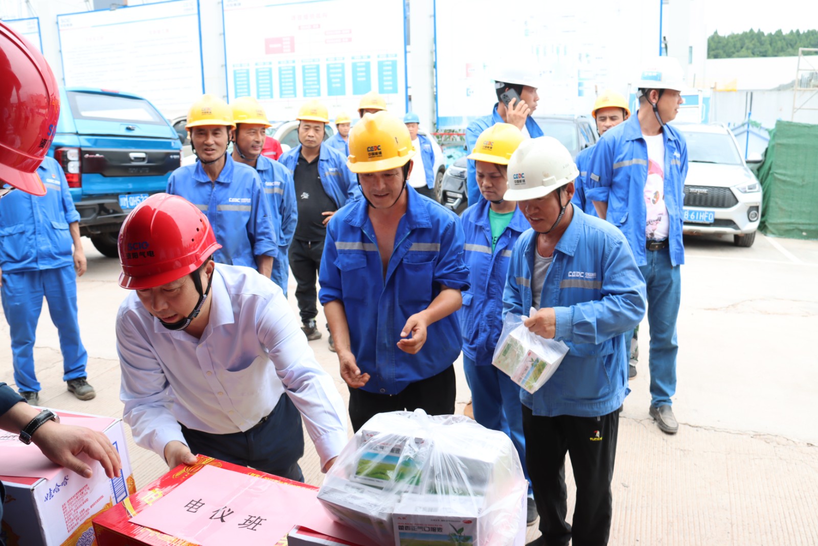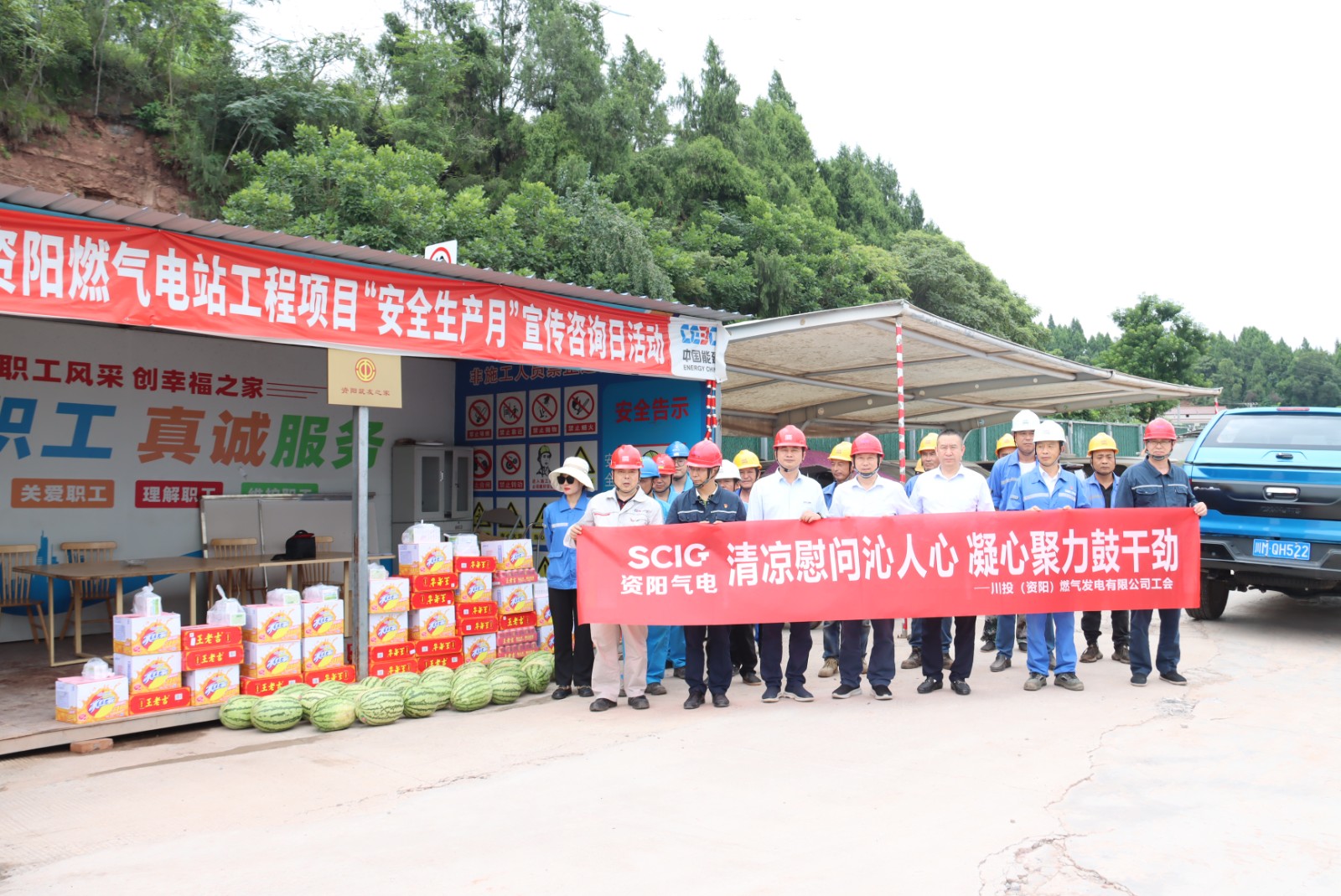 在筑友之家,公司工會為施工人員準(zhǔn)備了涼茶、藿香正氣液、西瓜等防暑降溫物品,務(wù)求把關(guān)懷與敬意發(fā)放到每位施工人員手中,并叮囑他們要注意防暑降溫,保障好自身安全。在接到慰問品后,施工人員的臉上都洋溢著笑容,大家紛紛表示“感謝資陽氣電公司的關(guān)心,我們干活更有勁了!”