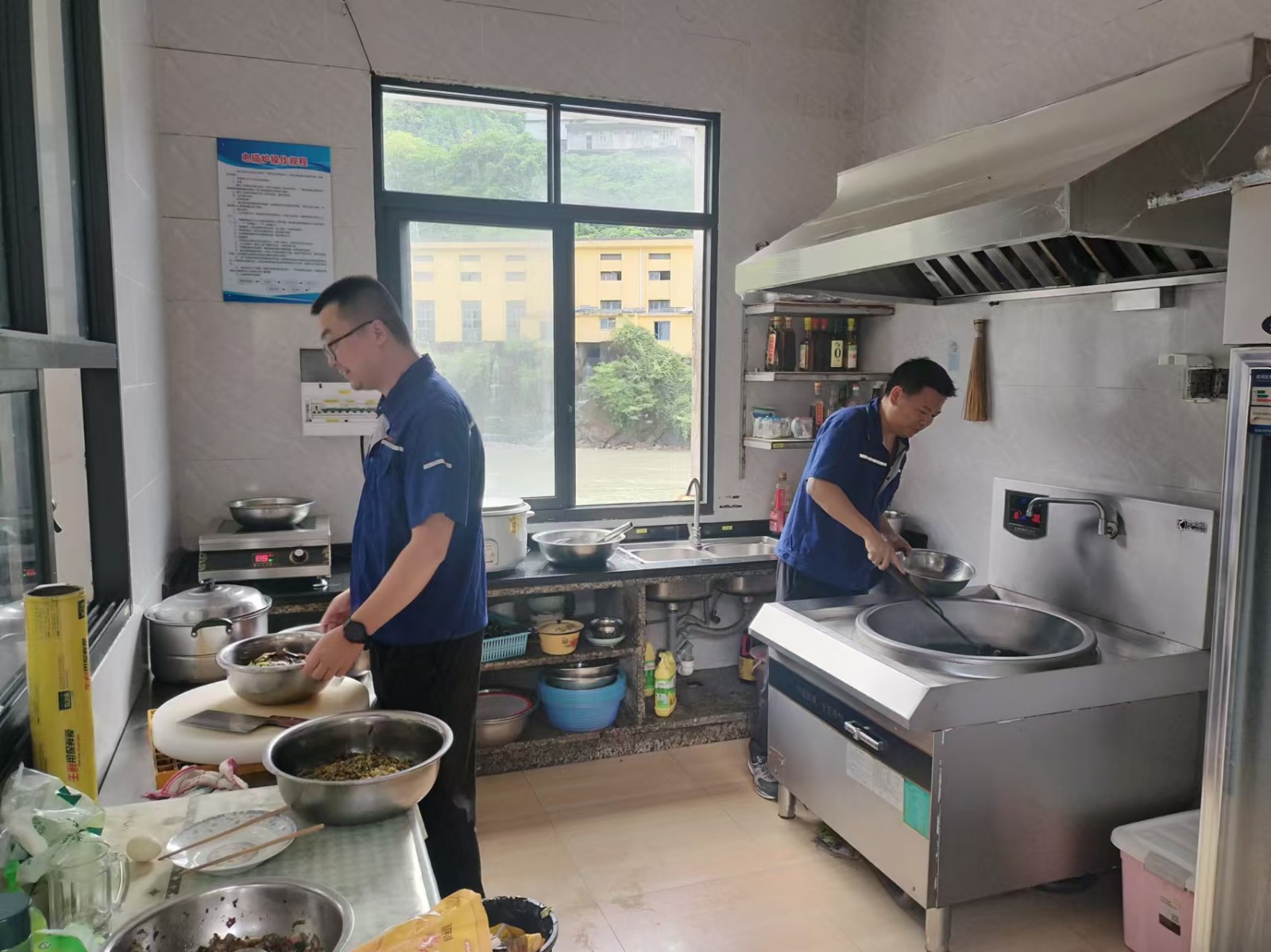 由于道路中斷,食堂工作人員無(wú)法抵達(dá)電廠(chǎng),解決值班人員的三餐成了難題。于是,在廠(chǎng)員工就自己動(dòng)手,充分利用有限的時(shí)間和食材,相互協(xié)同,在廚房烹飪出美味可口的飯菜,既解決了溫飽,更溫暖了人心。這期間,電廠(chǎng)周邊的企地共建企業(yè)和政府單位也給予了關(guān)心、幫助和支持。