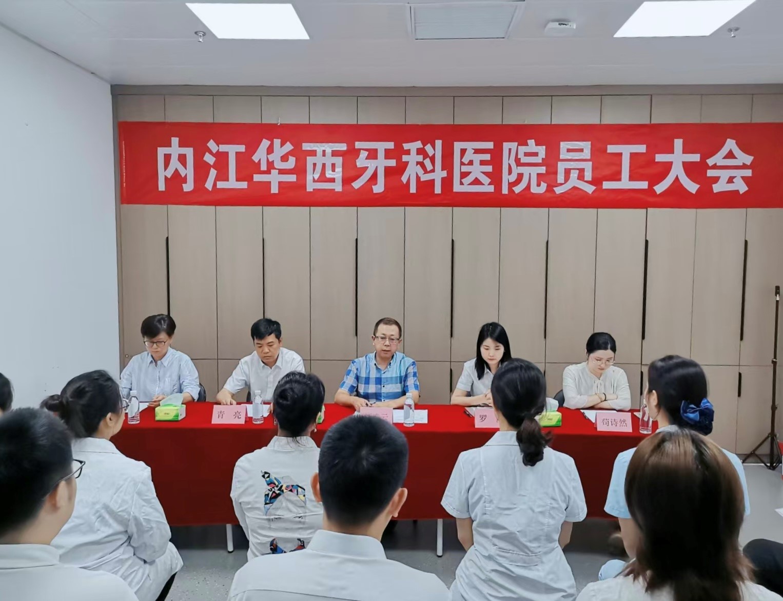 內(nèi)江華西牙科醫(yī)院領(lǐng)導(dǎo)班子成員、中層干部和全體員工參加會議。