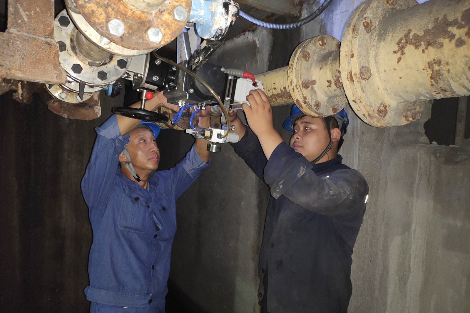 制漿脫水系統(tǒng)起著石灰石漿液制備和吸收塔石膏漿液脫水的作用,該系統(tǒng)設備的可靠與否直接影響機組的安全環(huán)保運行。制漿脫水系統(tǒng)由一根根管道組成,在公司上半年雙機持續(xù)高負荷運行工況下,這些管道早已不堪重負、傷痕累累。近期,公司充分利用低負荷時段,在脫硫除灰值班員和檢修人員的通力配合下,逐步對3、4號石膏旋流站管道及濾網箱、C/D磨機的漿液循環(huán)、稀釋水、研磨水管道、濾液水系統(tǒng)出口管道進行焊補、陶瓷防腐以及管道更換。運行值班員做好隔離安措,加大剩余制漿脫水設備的精細操作和巡檢力度,做好漿液不足或脫水設備故障的事故應急處理預案;檢修人員爭分奪秒,在保證制漿脫水系統(tǒng)安全運行的同時進行精細施工。