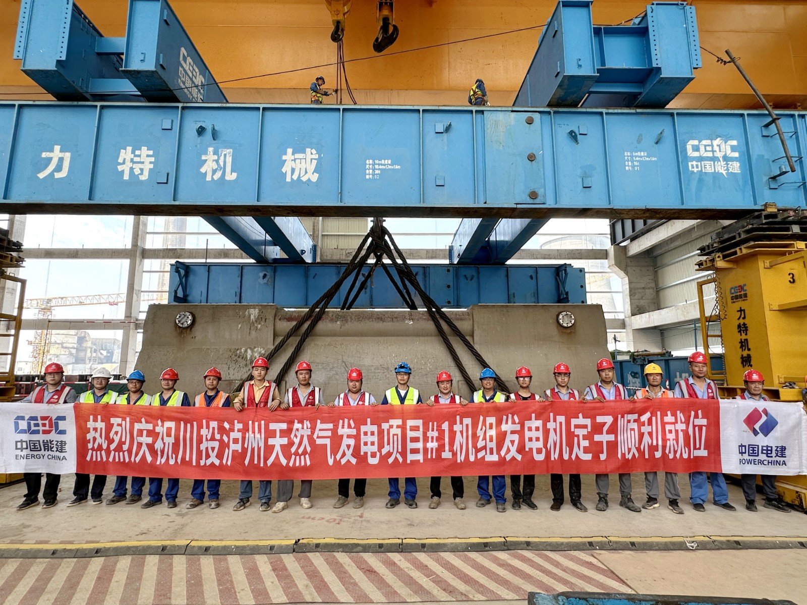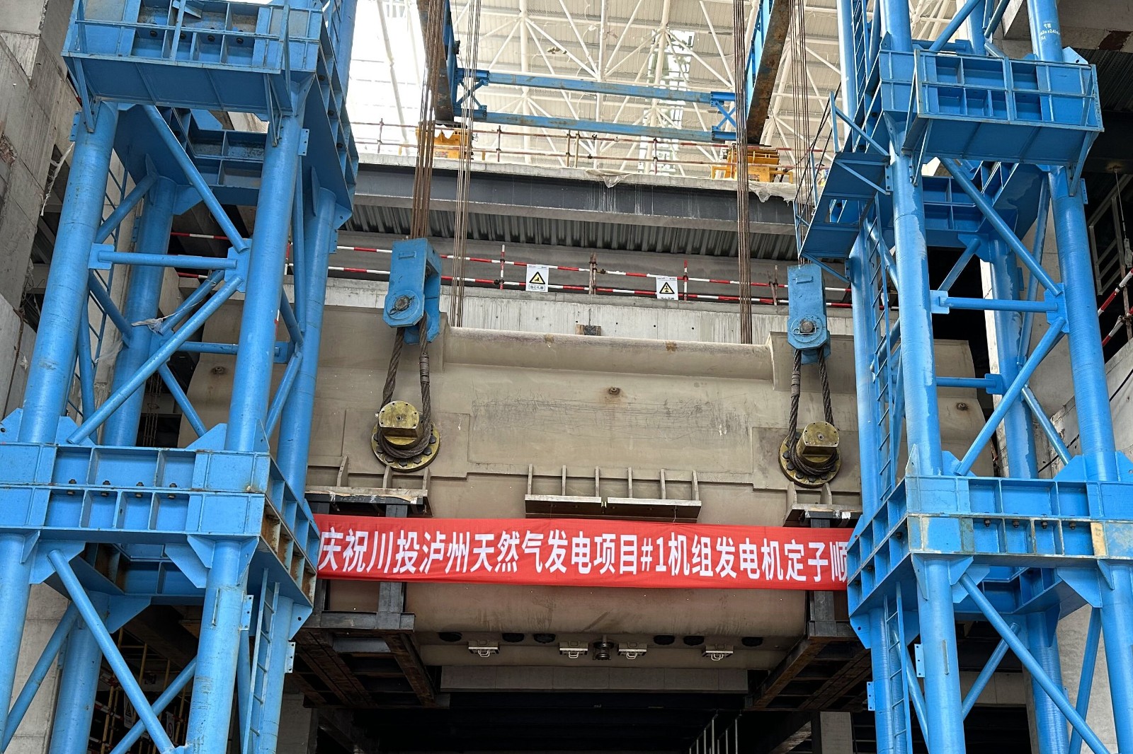 8月19日11時28分,川投瀘州天然氣發(fā)電項目1號發(fā)電機定子順利吊裝就位。