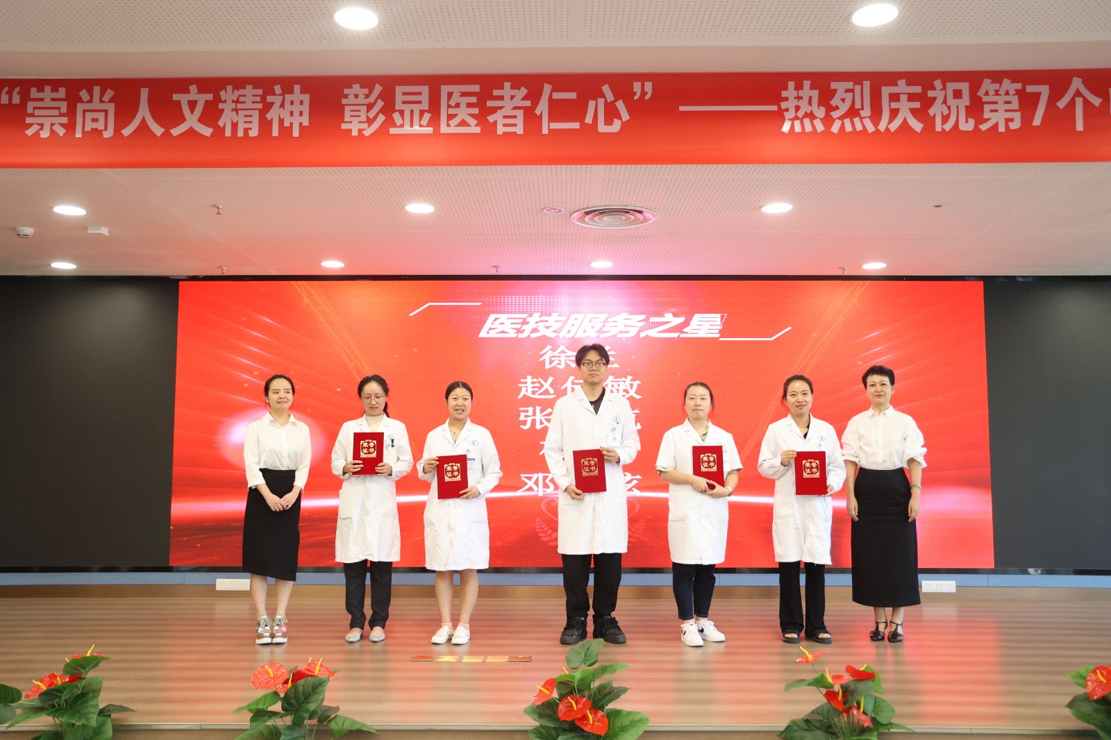 大會開場,主持人介紹了醫(yī)師節(jié)的重大意義以及醫(yī)院自開診運營以來所取得的諸多成績,營造出熱烈的現場氛圍。