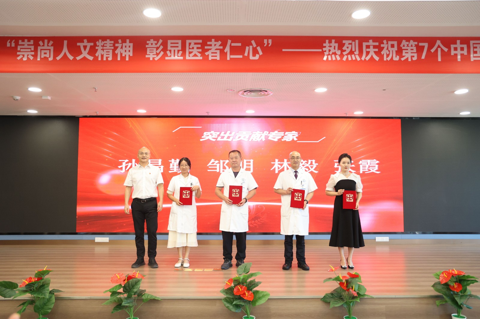 頒獎環(huán)節(jié),由醫(yī)院領導班子為在醫(yī)學領域深耕多年、醫(yī)術精湛的專家,崗位上兢兢業(yè)業(yè)的骨干醫(yī)師,充滿活力與潛力的青年醫(yī)師以及醫(yī)技服務表現出色的工作者頒獎,分別授予他們優(yōu)秀突出貢獻專家、優(yōu)秀骨干醫(yī)師、優(yōu)秀青年醫(yī)師、醫(yī)技服務之星等榮譽稱號。這不僅是表彰和樹立“優(yōu)秀”,更是對他們辛勤付出的充分認可。