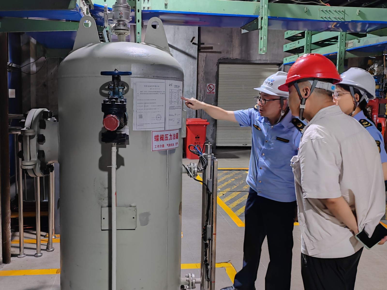 在公司職工食堂,檢查組逐一檢查了食堂操作間環(huán)境、炊具及餐具衛(wèi)生狀況,了解工作餐加工制作流程,重點對食堂管理制度建設(shè)及菜品的質(zhì)量安全把控情況進行了檢查。在鳳鳴橋車間生產(chǎn)一線,檢查組認真聽取關(guān)于公司基本情況、安全管理體系建設(shè)、特種設(shè)備安全操作規(guī)程完善、特種設(shè)備管理員、操作人員教育培訓(xùn)、特種設(shè)備隱患排查治理長效機制等方面的情況匯報,現(xiàn)場查看橋式起重機、壓力容器等特種設(shè)備的運行情況,翻閱了特種設(shè)備檢查記錄、定檢校驗臺賬等工作資料。