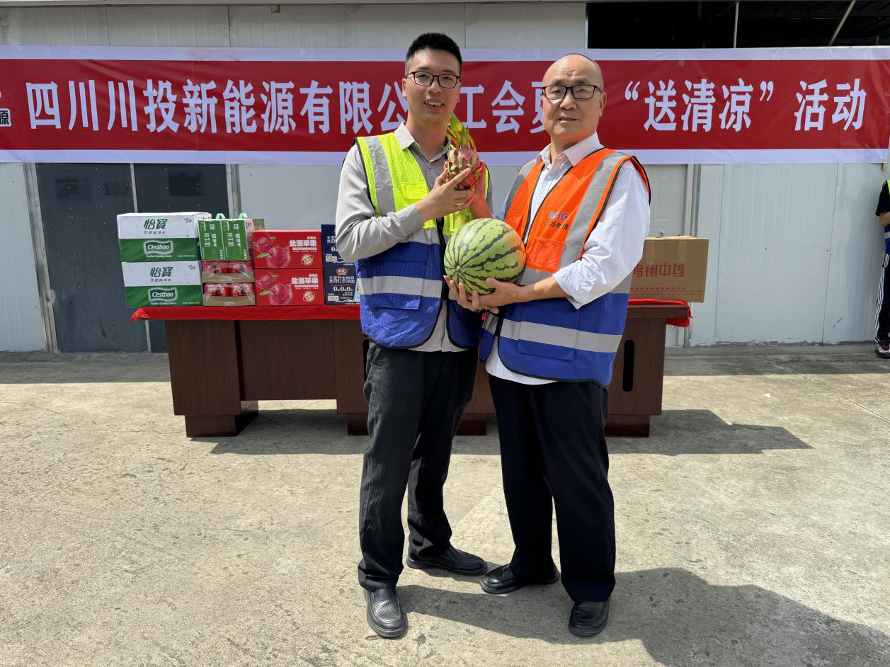 8月20日,川投新能源公司董事、工會(huì)主席文匯鋒帶隊(duì)前往涼山州德昌2#地塊跑馬坪光伏項(xiàng)目部開(kāi)展“送清涼”慰問(wèn),為項(xiàng)目建設(shè)一線(xiàn)干部職工發(fā)放防暑藥品及夏季降溫物資。