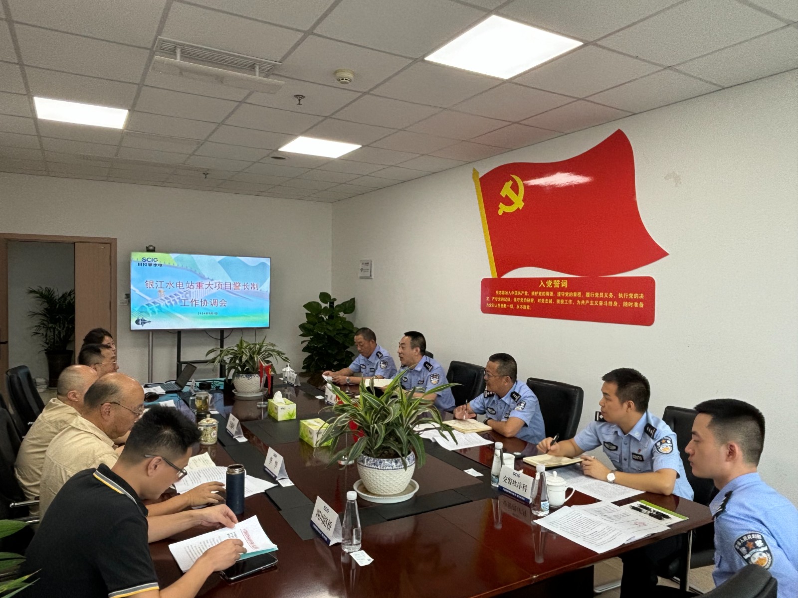 為保障銀江水電站重大項(xiàng)目安全順利推進(jìn),護(hù)航服務(wù)攀枝花市高質(zhì)量發(fā)展建設(shè)共同富裕試驗(yàn)區(qū),攀枝花市公安局與川投能源下屬攀水電公司建立了銀江水電站“重大項(xiàng)目警長制”,近日,市公安局機(jī)關(guān)黨委副書記張征帶隊(duì)赴公司召開工作協(xié)調(diào)會(huì)議。攀水電公司黨總支副書記、總經(jīng)理、聯(lián)絡(luò)工作組組長吳巍嶼出席會(huì)議,交警支隊(duì)辦公室、秩序科、三大隊(duì)及公司相關(guān)部門等10余人參加會(huì)議。