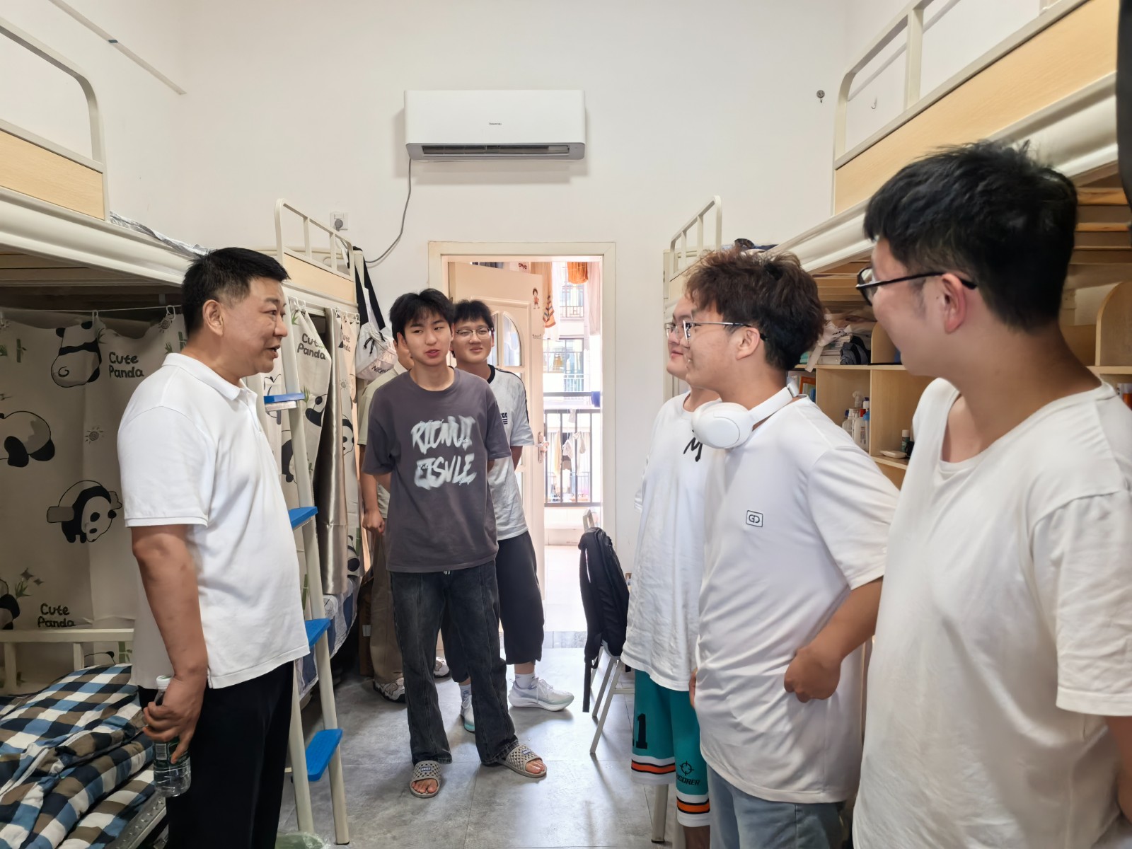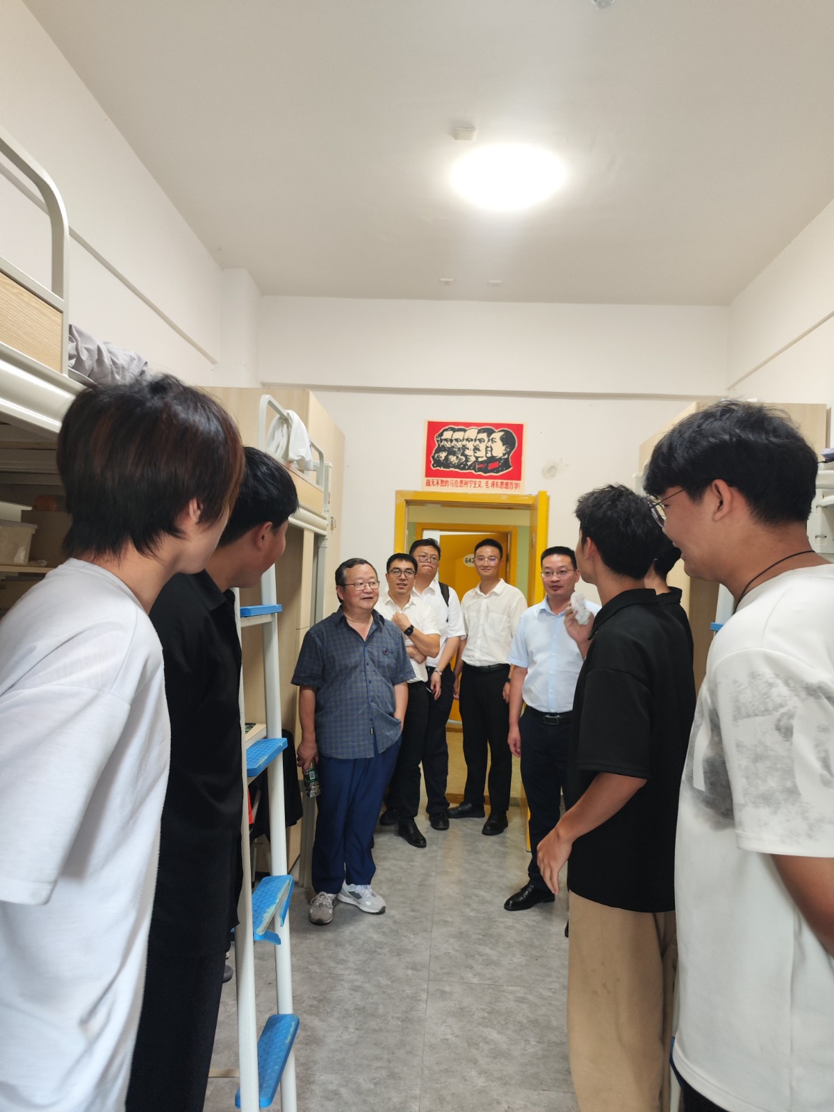 在學(xué)生宿舍里,院領(lǐng)導(dǎo)和新生親切拉家常、聊近況、話學(xué)業(yè),認(rèn)真傾聽他們的心聲和需求。“你老家是哪里的?”“如果飲食不習(xí)慣,可以給輔導(dǎo)員說”“對(duì)于大學(xué)生活有什么規(guī)劃……”院領(lǐng)導(dǎo)叮囑同學(xué)們要主動(dòng)融入集體,建立和諧融洽的人際關(guān)系,提高安全防范意識(shí)。他們鼓勵(lì)大家要堅(jiān)定理想信念,樹立學(xué)習(xí)目標(biāo),始終葆有不斷追求的激情,勇于探索、敢于挑戰(zhàn),珍惜大學(xué)學(xué)習(xí)機(jī)會(huì),努力成長為德智體美勞全面發(fā)展的創(chuàng)新型應(yīng)用型人才。