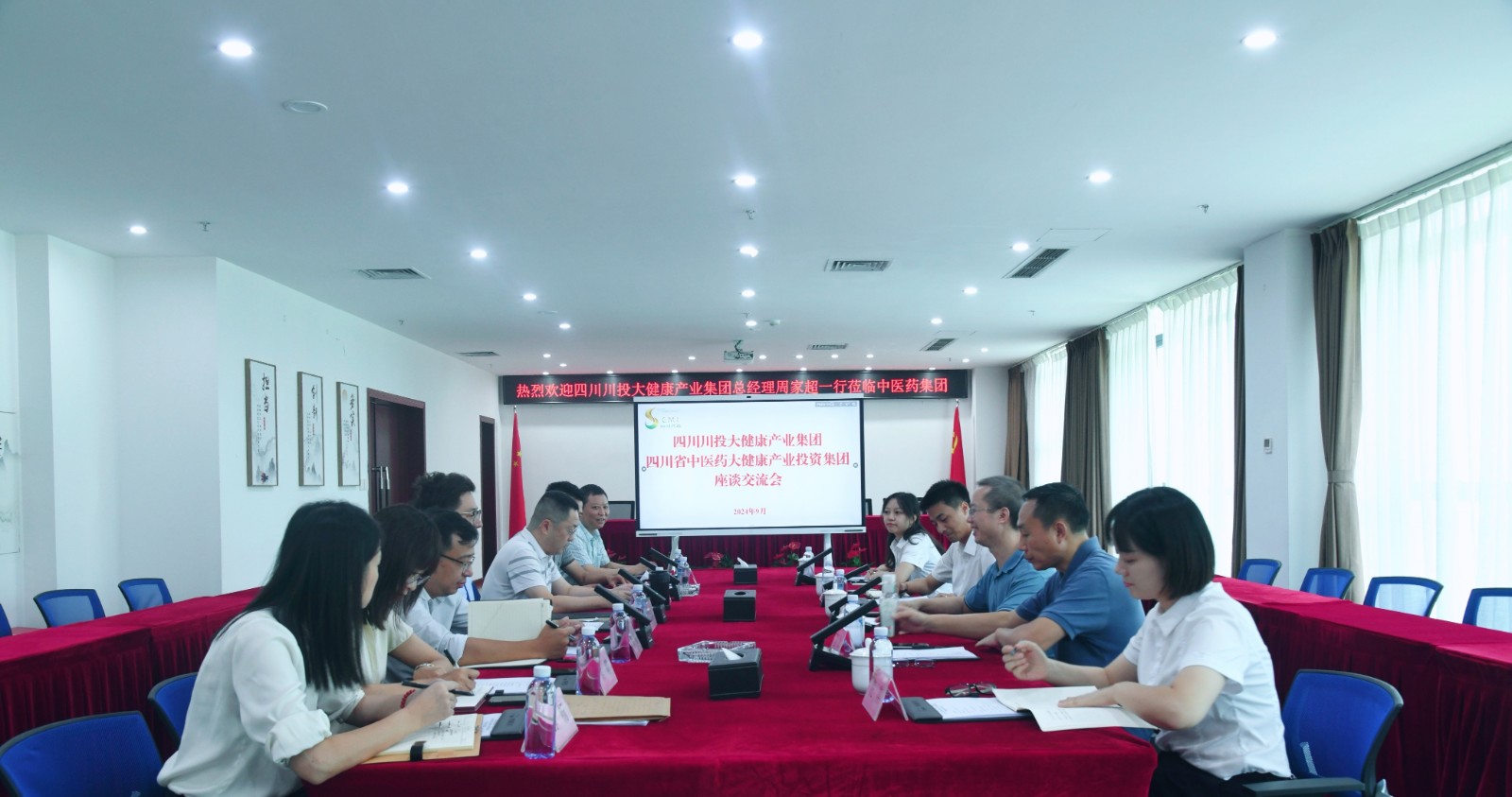 9月18日,川投大健康黨委副書記、總經(jīng)理周家超帶隊赴省中醫(yī)藥集團座談交流,副總經(jīng)理、財務總監(jiān)姜濤參加會議。
