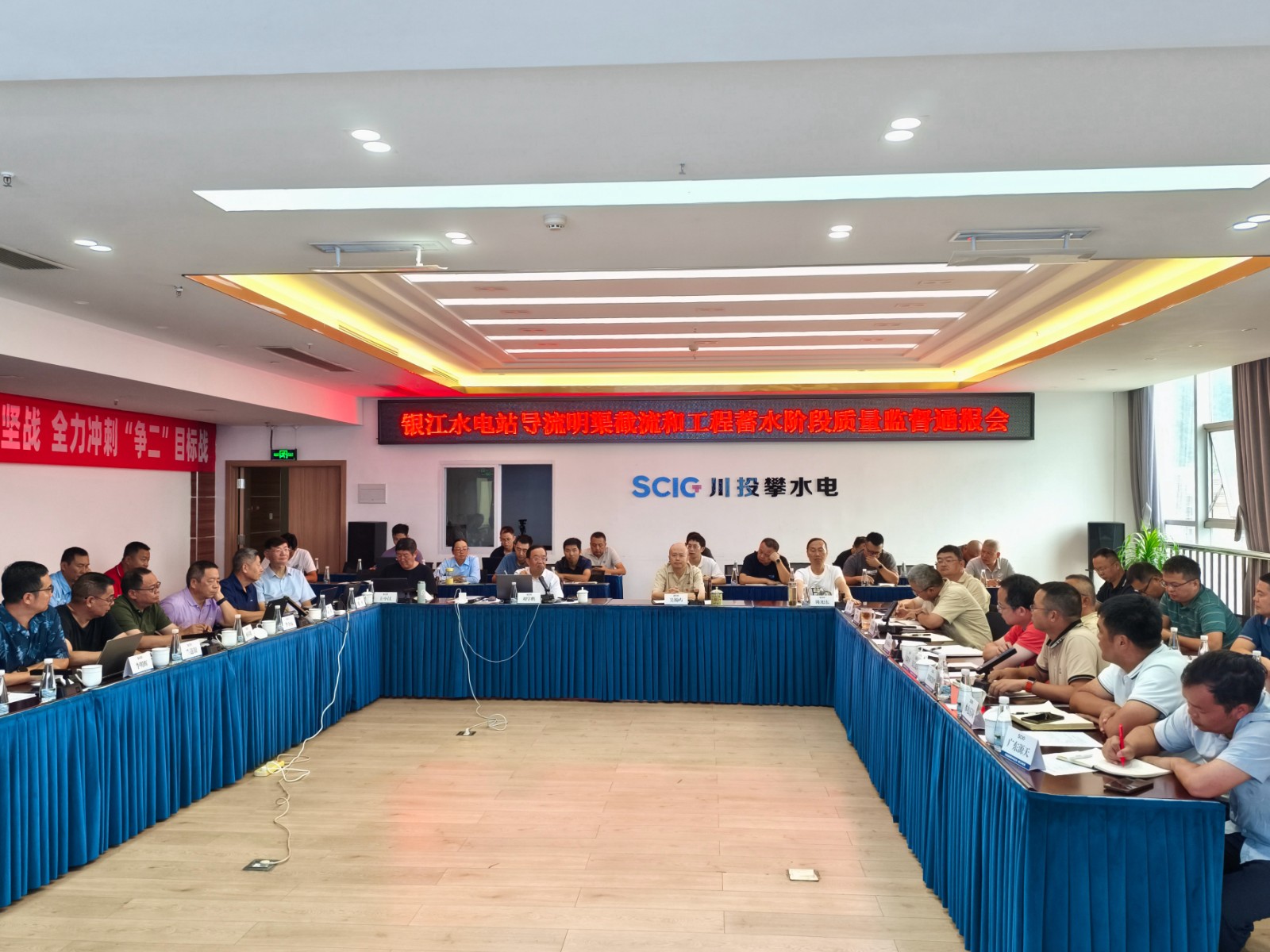 9月21,在進(jìn)行多次檢查和交流后,專家組組長劉學(xué)鵬主持召開了銀江水電站導(dǎo)流明渠截流和工程蓄水階段質(zhì)量監(jiān)督通報(bào)會(huì),攀水電公司領(lǐng)導(dǎo)、各部門負(fù)責(zé)人及各參建單位負(fù)責(zé)人共40余人參加會(huì)議。專家組與各參建單位進(jìn)行了充分的討論并交換意見,形成了銀江水電站導(dǎo)流明渠截流和工程蓄水階段質(zhì)量監(jiān)督報(bào)告。報(bào)告指出,截至目前,與導(dǎo)流明渠截流及工程蓄水相關(guān)的土建工程、金屬結(jié)構(gòu)工程、安全監(jiān)測工程基本完成,剩余尾工及消缺處理等工作已有計(jì)劃安排并在抓緊施工;導(dǎo)流明渠截流及工程蓄水組織機(jī)構(gòu)已建立,導(dǎo)流明渠截流及工程蓄水技術(shù)要求已提交,實(shí)施方案完成初稿編制,部分技術(shù)文件正在完善中。銀江水電站具備擇機(jī)進(jìn)行導(dǎo)流明渠截流及工程蓄水條件。