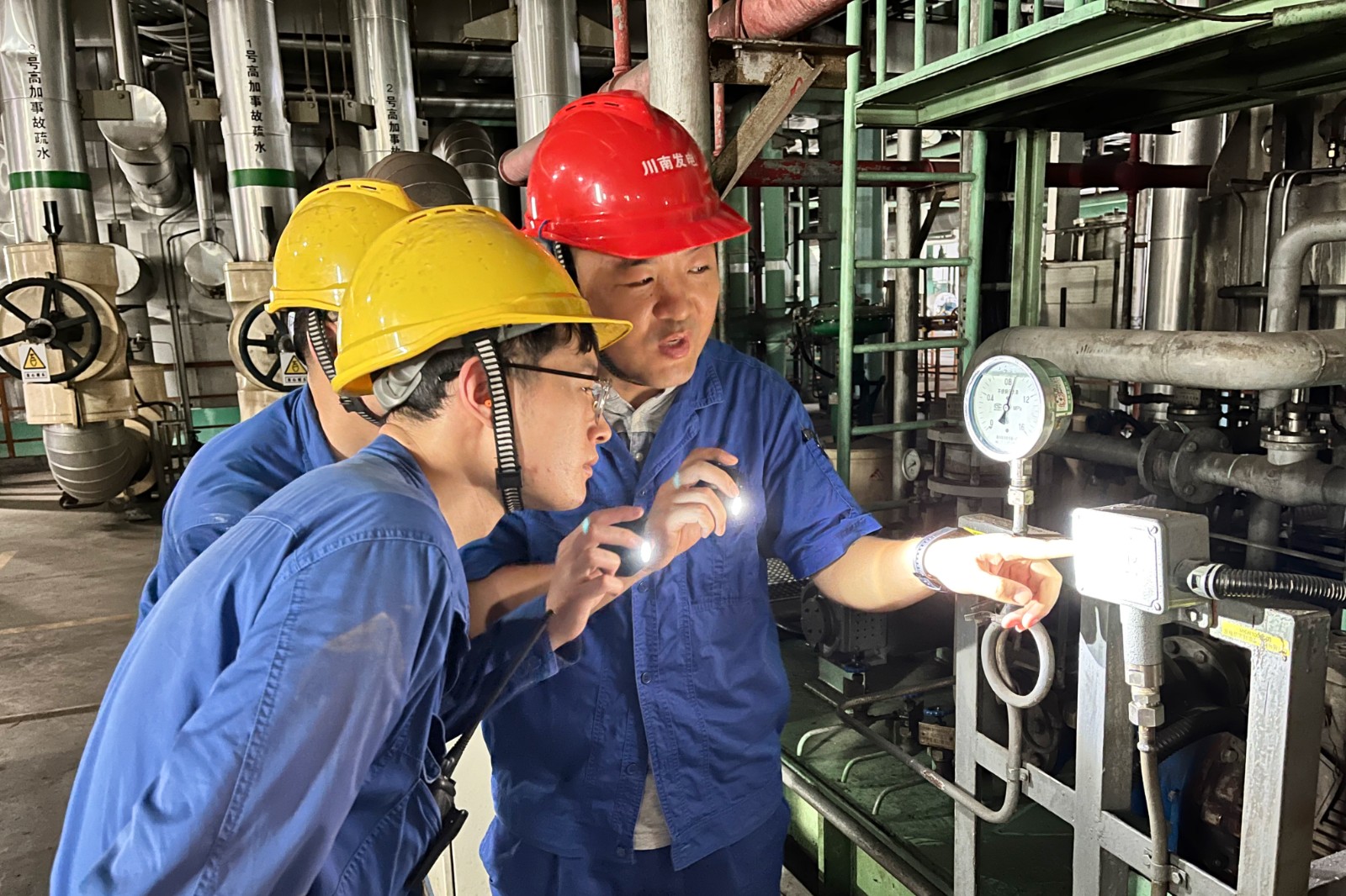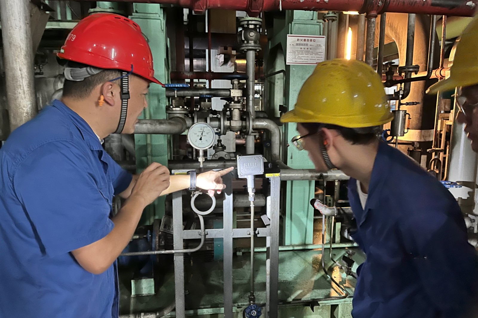 機(jī)組的穩(wěn)定出力離不開精準(zhǔn)調(diào)節(jié),巡檢員就是集控室操作人員掌握現(xiàn)場情況的眼睛。為了提高就地人員巡檢質(zhì)量,確保機(jī)組穩(wěn)定運(yùn)行,川南發(fā)電公司緊抓現(xiàn)場培訓(xùn)工作不放松。近日,針對定冷水系統(tǒng)的現(xiàn)場操作進(jìn)行了專題培訓(xùn),重點(diǎn)講解了斷水保護(hù)、定冷水泵切換、超凈化裝置等,并講解熱工儀表編號的含義。同時在現(xiàn)場培訓(xùn)期間遇到凝汽器膠球清洗系統(tǒng)膠球計數(shù)定期工作,汽機(jī)專工順勢而為,現(xiàn)場讓大家學(xué)會了收球網(wǎng)狀態(tài)的判斷方法和膠球裝置反沖洗投運(yùn)操作。同日,鍋爐專工帶領(lǐng)巡檢人員在環(huán)境溫度超過45℃的燃燒器平臺進(jìn)行燃燒器外環(huán)旋流風(fēng)和分離器折向擋板的調(diào)節(jié)工作,所有人員不懼“烤”驗(yàn),在順利完成工作的同時學(xué)會了調(diào)節(jié)和操作原理,提升了鍋爐運(yùn)行穩(wěn)定性、經(jīng)濟(jì)性。