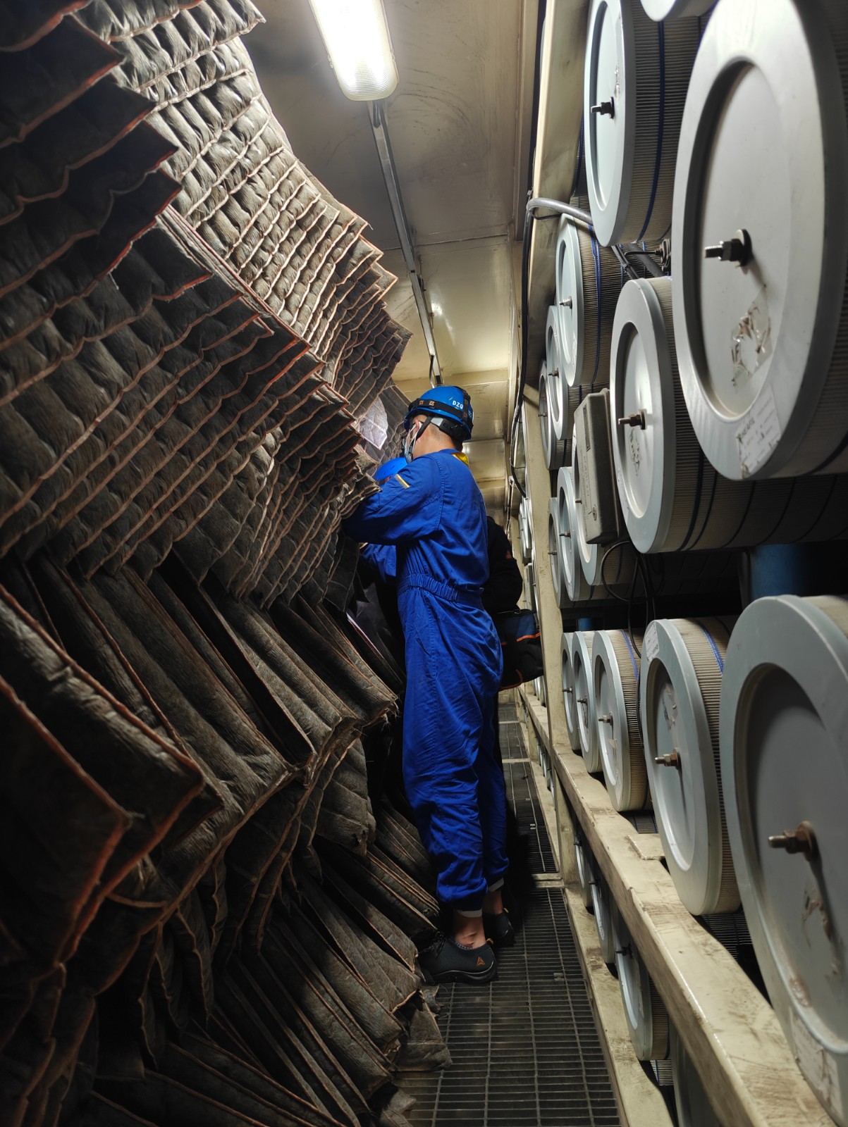 【川投燃電】達(dá)州氣電公司機(jī)務(wù)檢修班組連夜突擊更換1號(hào)機(jī)組進(jìn)氣濾網(wǎng)
