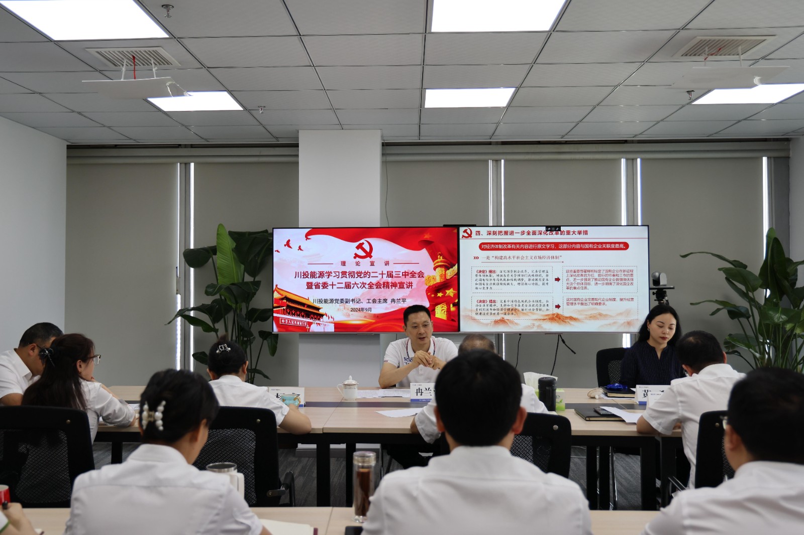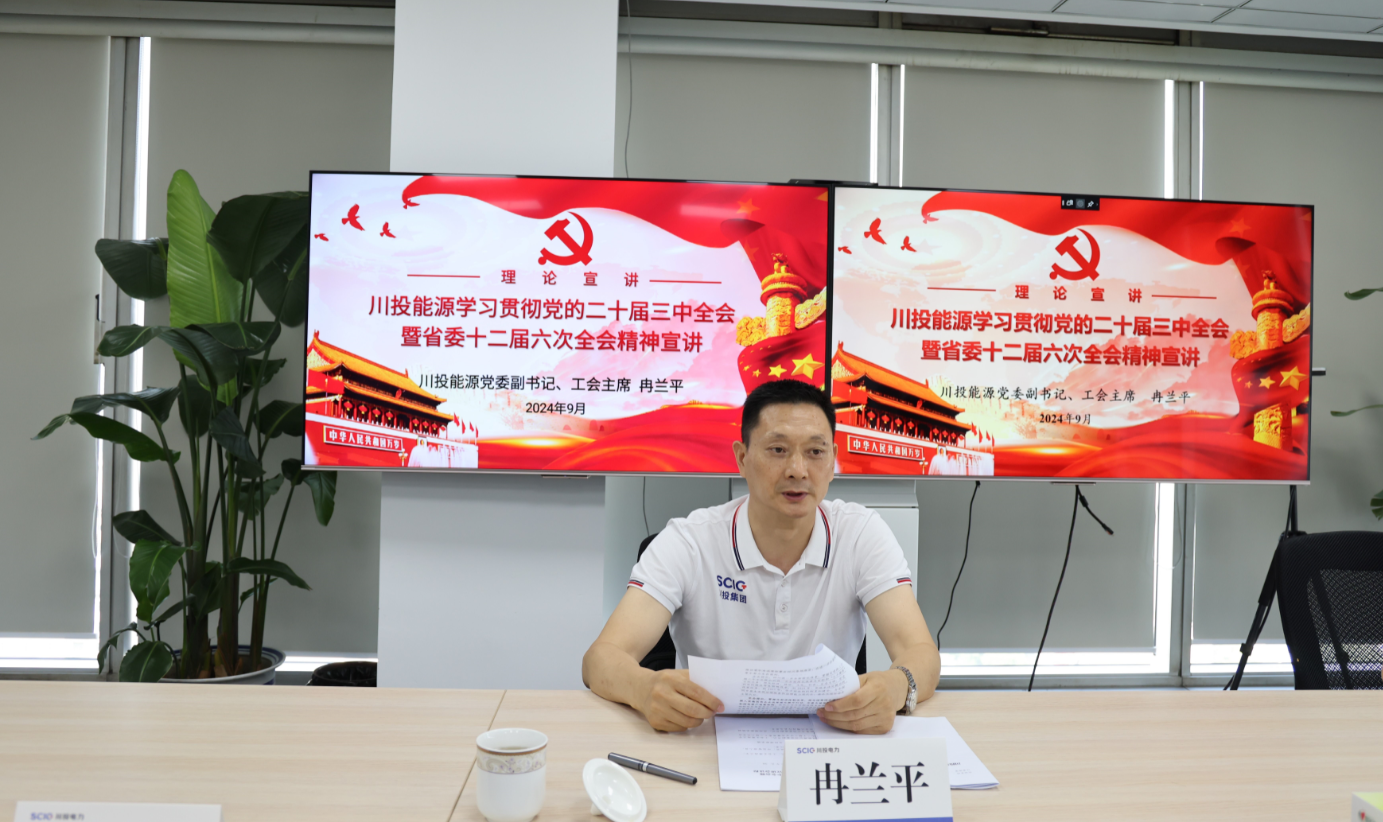 9月26日,川投能源黨委副書(shū)記、工會(huì)主席冉蘭平赴川投電力公司專題宣講黨的二十屆三中全會(huì)精神和省委十二屆六次全會(huì)精神,為進(jìn)一步全面深化改革凝心聚力。川投電力黨委副書(shū)記、總經(jīng)理蔡承德主持會(huì)議。