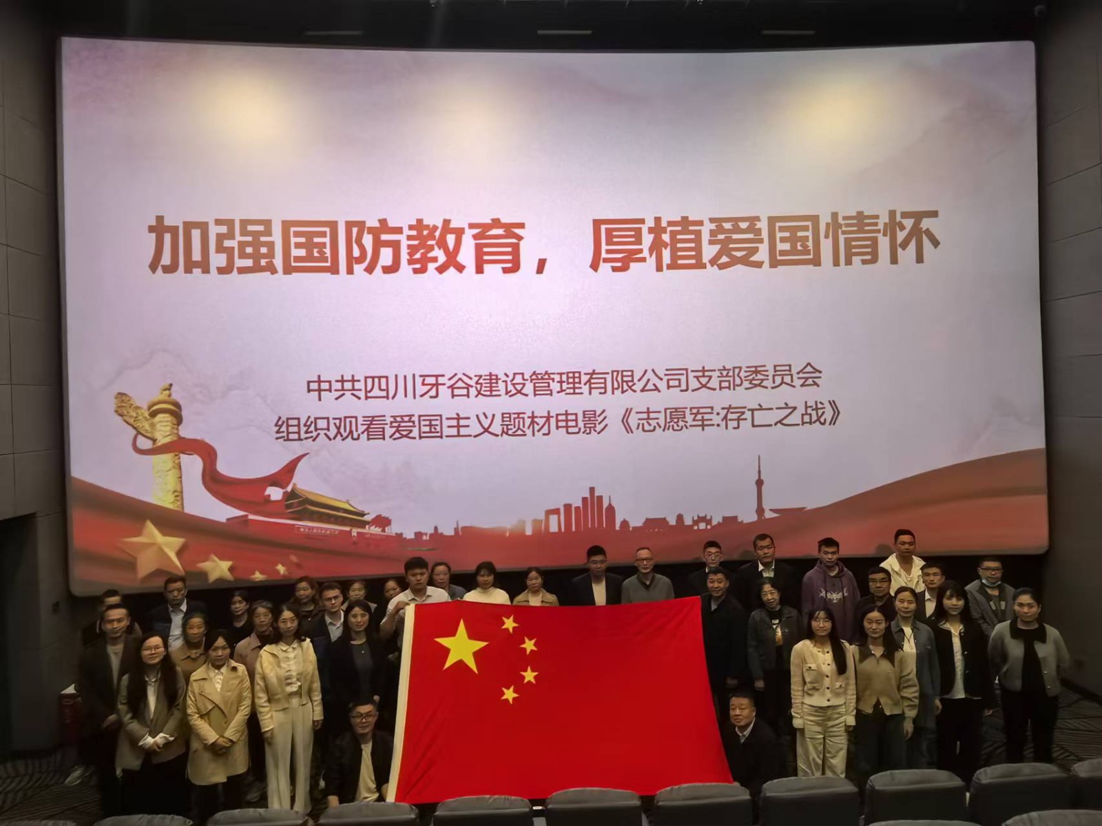 為堅持以習(xí)近平新時代中國特色社會主義思想為指導(dǎo),深入學(xué)習(xí)貫徹習(xí)近平強(qiáng)軍思想和習(xí)近平總書記關(guān)于加強(qiáng)全民國防教育的重要指示精神,10月11日下午,牙谷公司黨支部組織公司全體員工、項目建設(shè)單位、物業(yè)管理公司、產(chǎn)業(yè)園區(qū)入駐企業(yè)黨員員工代表共計40余人開展國防教育主題黨日活動:觀看愛國主義影片《志愿軍:存亡之戰(zhàn)》。