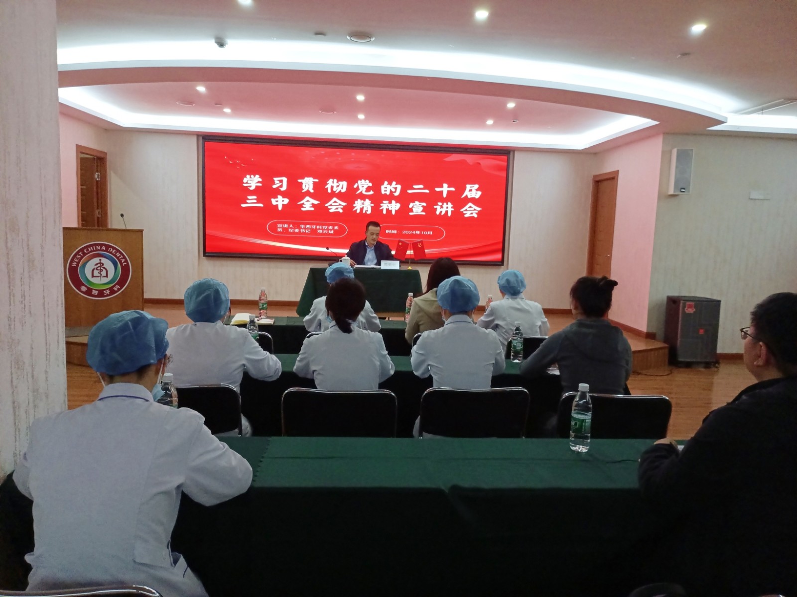 10月11日,華西牙科黨委委員、紀(jì)委書記鄧云斌赴重慶華西牙科醫(yī)院開展學(xué)習(xí)貫徹黨的二十屆三中全會暨省委十二屆六次全會精神專題宣講,重慶華西牙科醫(yī)院全體黨員、團(tuán)員參加。