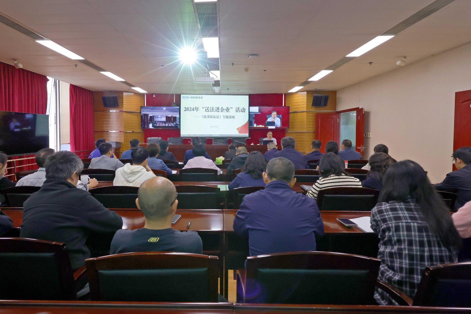 為深入學(xué)習(xí)宣傳貫徹黨的二十屆三中全會(huì)精神,認(rèn)真貫徹落實(shí)習(xí)近平法治思想,按照省國(guó)資委《關(guān)于集中開展“送法進(jìn)企業(yè)”活動(dòng)的通知》,10月24日,田灣河公司在成都遠(yuǎn)控1801、電站現(xiàn)場(chǎng)208會(huì)議室舉辦法治教育專題講座,公司在家班子成員、中層管理人員,以及非生產(chǎn)值班全體人員共50余人參加講座。專題講座由公司黨委副書記、職工董事、工會(huì)主席楊坤主持。
