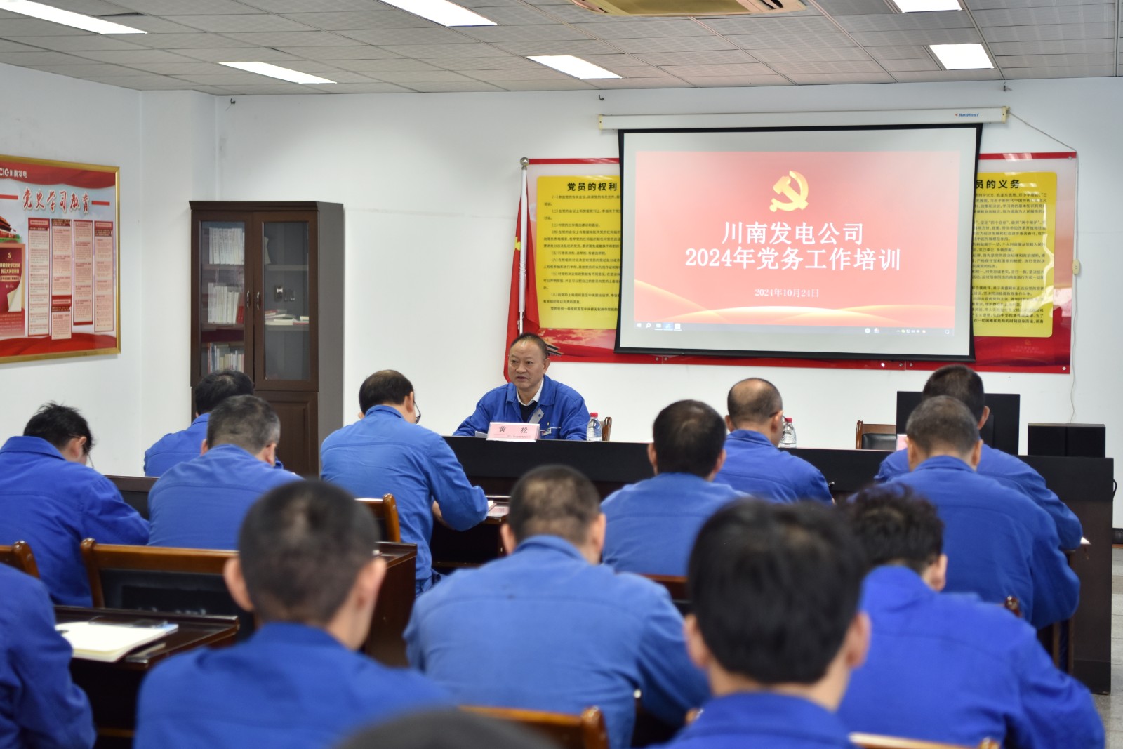 為進(jìn)一步提升黨員干部政治理論水平,提高黨務(wù)工作人員履職能力,推動(dòng)公司黨建工作取得新突破,10月24日,川南發(fā)電開展2024年黨務(wù)工作人員培訓(xùn)。川南發(fā)電公司黨委副書記、工會(huì)主席黃松主持會(huì)議并講話,黨務(wù)工作人員、黨員代表及優(yōu)秀團(tuán)員青年代表共40余人參加學(xué)習(xí)。