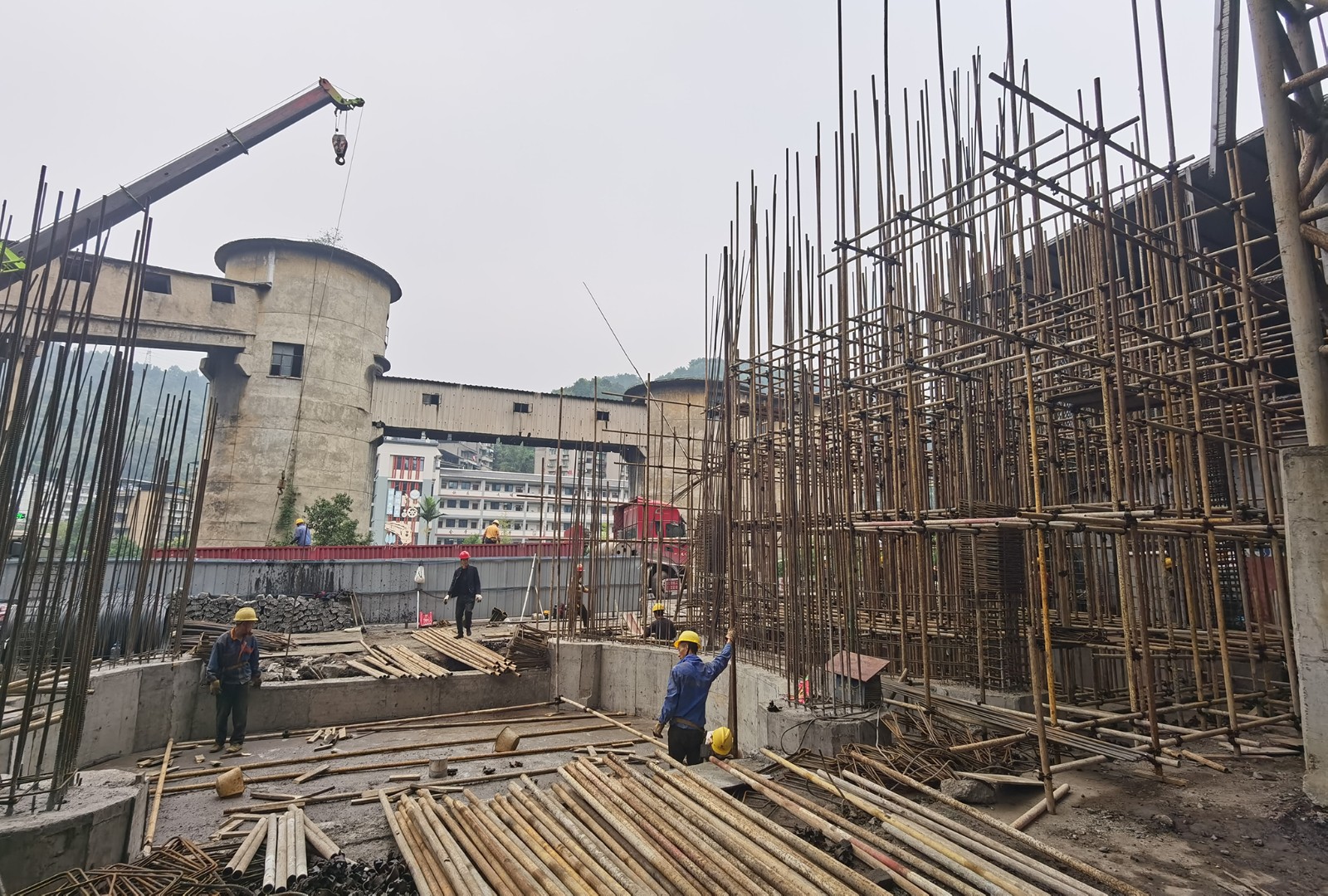 繼分級(jí)轉(zhuǎn)運(yùn)系統(tǒng)主體竣工后,配套設(shè)施工程建設(shè)往外加速推進(jìn),主要在嘉陽煤礦炭壩原入口處新建兩個(gè)儲(chǔ)備800噸煤炭的煤倉,工期120天,現(xiàn)已完成兩煤倉樁基施工和地梁混凝土澆灌并通過驗(yàn)收。目前,施工人員正按設(shè)計(jì)搭建腳手架,從兩個(gè)煤倉的基礎(chǔ)向上延伸鋼筋,逐漸形成圓形煤倉筒體,為下一步混凝土澆灌作準(zhǔn)備。現(xiàn)場(chǎng),公司現(xiàn)場(chǎng)管理單位緊盯工程進(jìn)度,做好全過程技安指導(dǎo)與督察,確保工程順利推進(jìn)。
