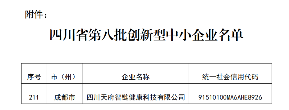 近日,四川省經(jīng)濟和信息化廳公布了四川省第八批創(chuàng)新型中小企業(yè)名單,川投信產(chǎn)所屬智鏈健康憑借其在智慧醫(yī)療、健康大數(shù)據(jù)及個性化互聯(lián)網(wǎng)健康服務領(lǐng)域突出的技術(shù)創(chuàng)新、管理創(chuàng)新和專業(yè)能力,成功入選該名單。